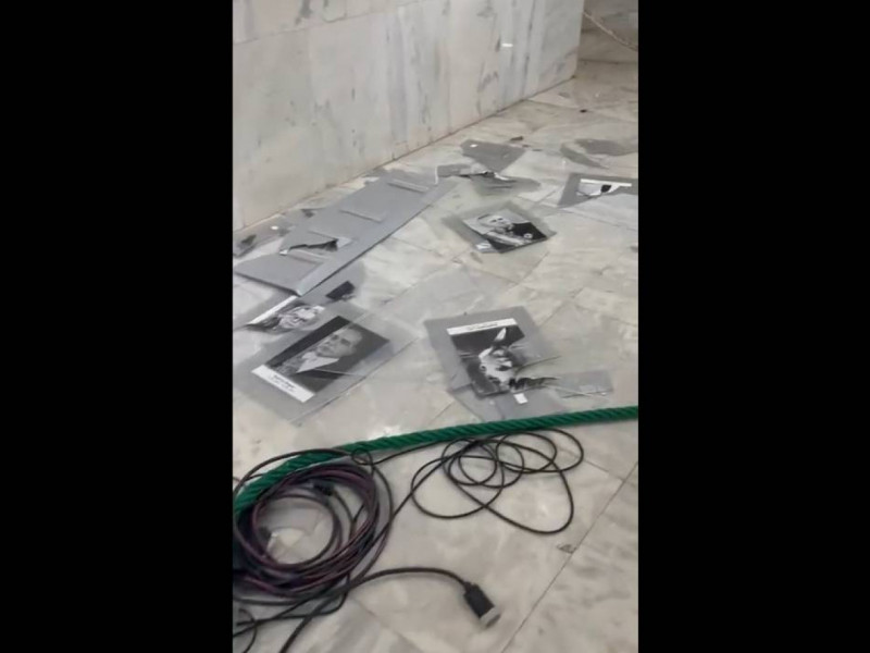 Em vídeo que circula nas redes sociais, é possível ver o estrago causado pelos extremistas. Muitas imagens foram rasgadas e a moldura de outras foram destruídas.