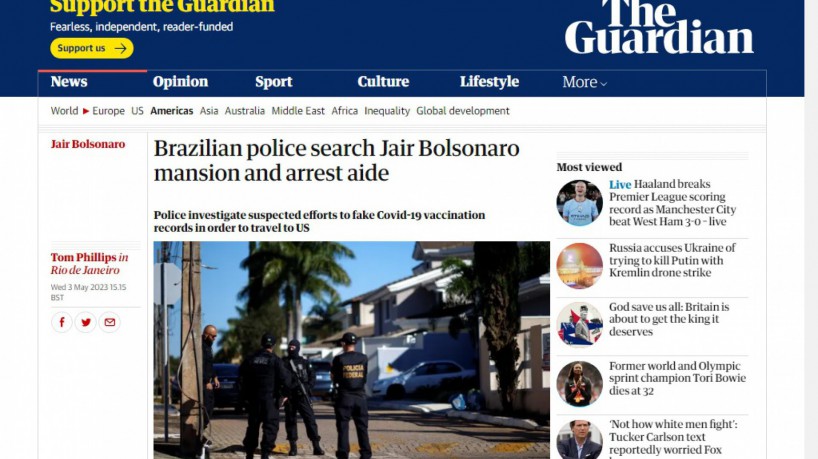 O jornal inglês The Guardian também reportou o ocorrido, e ressaltou que Mauro Cid, preso no início da manhã, é conhecido por ser o "braço direito" de Bolsonaro.