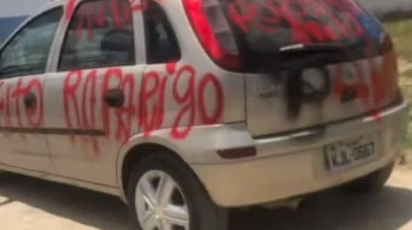 Em um vídeo publicado nas redes sociais, a primeira-dama aparece pichando um Chevrolet Corsa com xingamentos destinados a uma terceira pessoa. Veja o vídeo, que passou a circular na internet no último fim de semana.