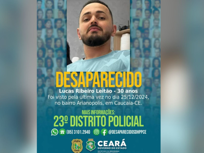Lucas era tido como desaparecido no Ceará. Na sexta-feira, 27, o perfil oficial da 12ª Delegacia do Departamento de Homicídios e de Proteção à Pessoa (DHPP) do Ceará publicou que o homem estava desaparecido. A divulgação acontece quando amigos e familiares procuram unidades policiais e reportam o desaparecimento.