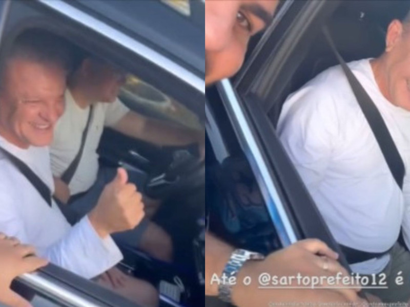 O prefeito, conforme o registro em vídeo, está em um carro no banco do passageiro. Ele não está usando blusa ou qualquer adereço que ligue a André Fernandes. O veículo aparece em velocidade lenta e apoiadores do candidato do PL interagem com Sarto. "Olha o Sarto. É 22", diz um dos apoiadores. Eles usam blusas e é possível ouvir jingles da campanha de André no fundo do vídeo.
