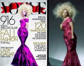 Lady Gaga já havia divulgado à "New York Magazine", em 2010, que utilizava Photoshop em suas fotos. No entanto, a questão discutida pelos fãs é que a capa da revista Vogue parece estar bem distante da realidade.