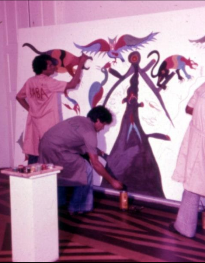 Assim foi feito. Por alguns dias, eles vestiram camisetas com seus respectivos nomes e produziram o quadro. Na época, Chico da Silva estava internado em um hospital psiquiátrico, mas teve autorização para sair com a supervisão de Hélio Rôla, que também era médico.