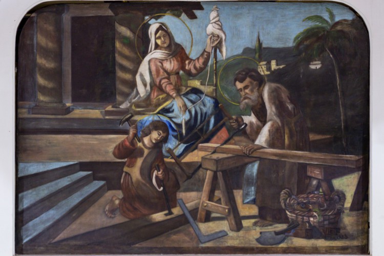 Há quase um século, o artista cearense Vicente Leite (1900 - 1941) produziu uma pintura que retrata a Sagrada Família. Na obra, há Maria, Jesus Cristo quando ainda era jovem e São José. A imagem dos três, que estão trabalhando como operários para representar a profissão do pai adotivo do Messias, retornou ao Teatro São José em novembro após passar por uma restauração.