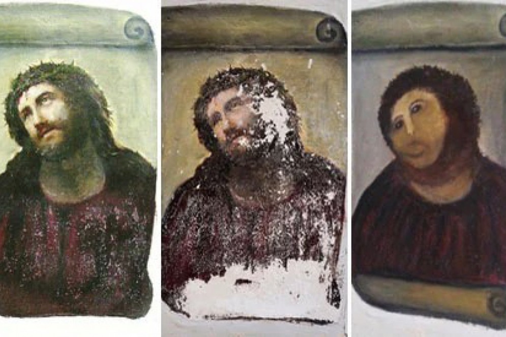 Conhecida como "Ecce Homo", a obra original foi pintada por Elías García Martínez e restaurada por Cecilia Giménez