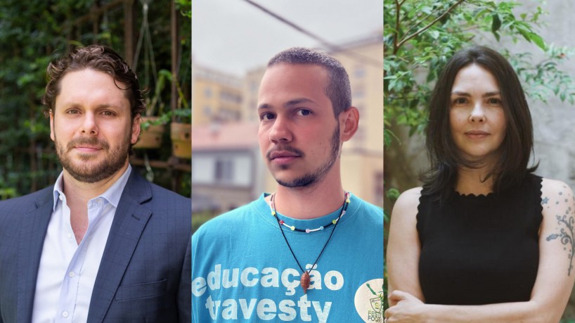 Victor Perlingeiro é diretor da Galeria Multiarte e coordena catalogações de patrimônios públicos e privados. Jonas Van é artista transnordestino e trabalha com som, vídeo e poesia explorando transmutações, linguagem, ficção especulativa e espiritualidade. Já Galciani Neves atuou em instuições como a Fundação Bienal de São Paulo, Instituto Tomie Ohtake e Museu Brasileiro da Escultura e da Ecologia.