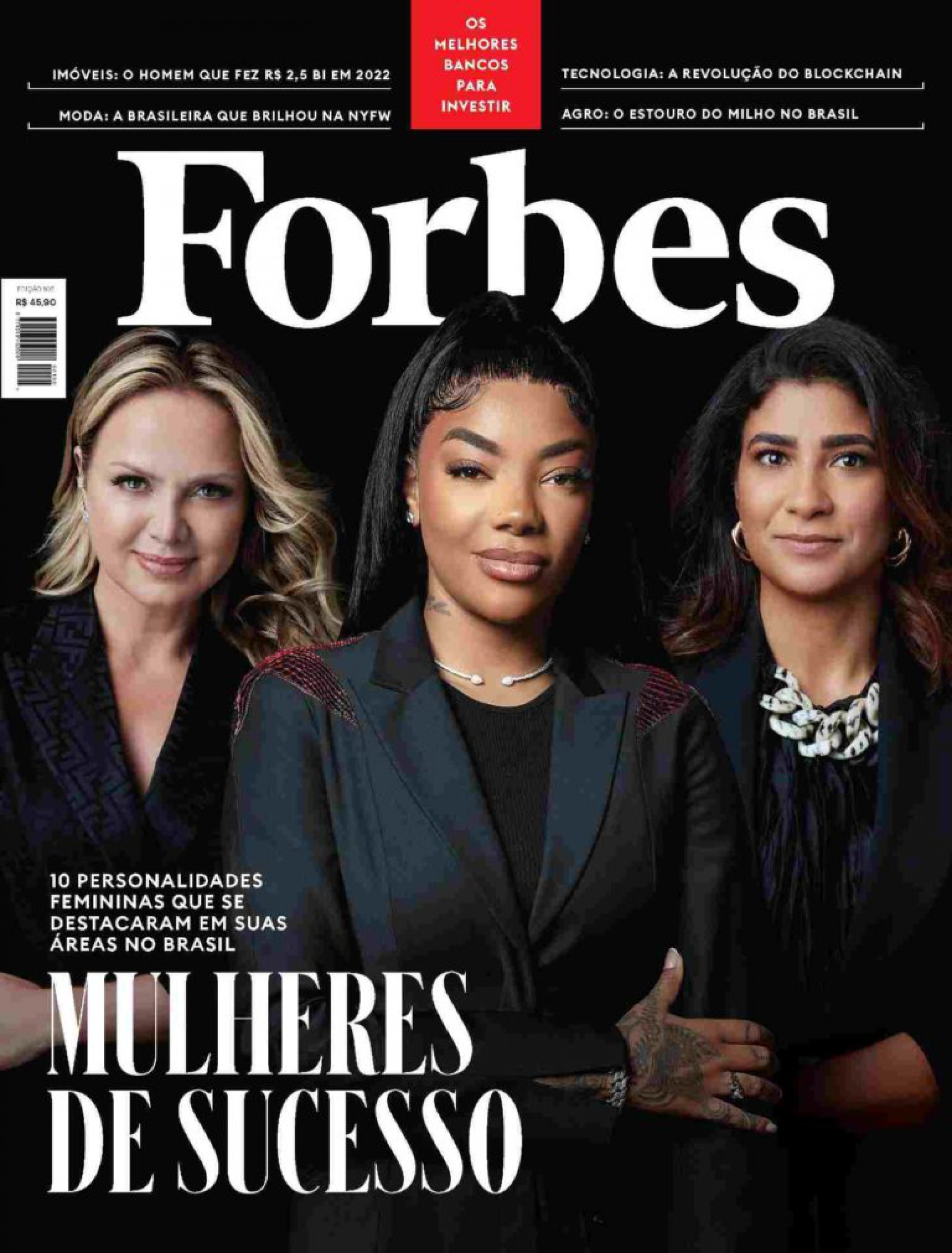 Ao lado da artista, a apresentadora Eliana também aparece na capa da 105ª edição da Forbes Brasil, assim como Monalisa Gomes, country manager da Schauer Agrotronic para as Américas, Espanha e Portugal. A revista está disponível nos aplicativos na App Store e na Play Store.