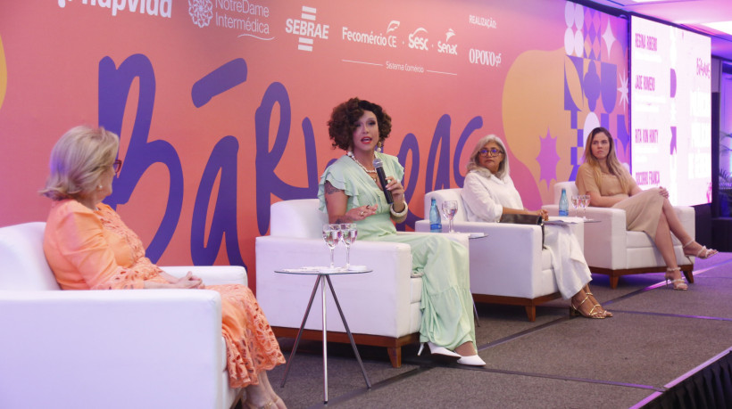 O painel “Políticas Públicas de Gênero” deu início ao encontro. A conversa reuniu a vice-governadora Jade Romero, Rita Von Hunty, crítica cultural, arte-educadora e persona-drag do professor e ator paulista Guilherme Terreri, e a secretária dos Direitos Humanos do Ceará Socorro França. O debate foi moderado por Regina Ribeiro, editora-chefe do O POVO+.