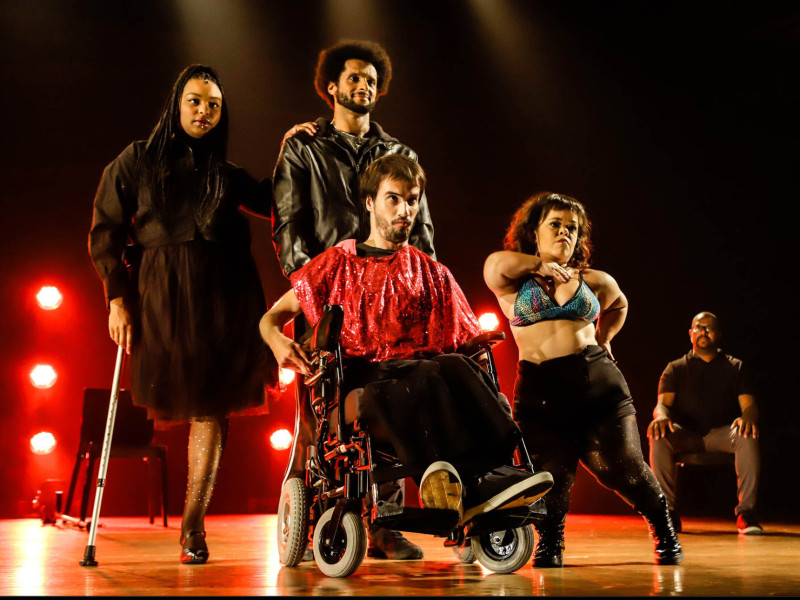 Em cena, os atores Bruno Ramos (surdo não oralizado), Haonê Thinar (pessoa amputada), Juliana Caldas (pessoa com nanismo), Pedro Fernandes (pessoa com paralisia cerebral e usuária de cadeira de rodas) e Jadson Abraão (intérprete de Libras) compartilham histórias que põem lupa sobre a invisibilidade de seus corpos e o apagamento da sexualidade.
