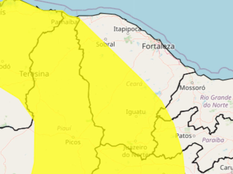 Em aviso sobre chuvas intensas que podem afetar áreas do Ceará — espaço que inclui os municípios de Juazeiro do Norte, Iguatu, Crateús e Tauá —, a previsão é de chuva entre 20 e 30 milímetros por hora ou até 50 milímetros por dia, além de ventos intensos (de 40 a 60 km/h).