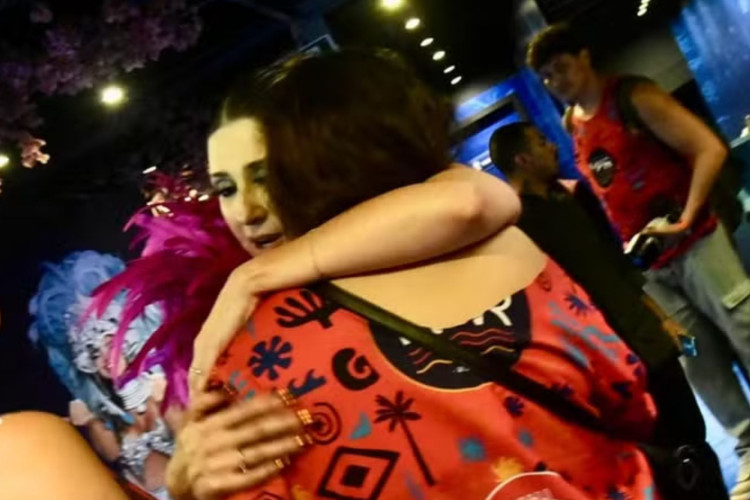 O encontro aconteceu no Camarote Mar, na Marquês de Sapucaí, localizada no Rio de Janeiro. Após a repercussão das imagens onde o também humorista é flagrado beijando outra mulher, Patrícia recebeu bem a conversa com Dani e a cumprimentou com um abraço.