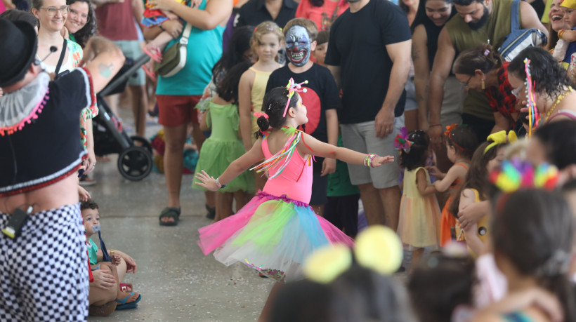 A festança começou logo às 9 horas da manhã, no Passeio Público. O local, também conhecido como Praça dos Mártires, foi dominado por fadas, homens-aranha e princesas por um dia, que correram e brincaram ao som da Charanga do Tio Marcão Lindão e Tia Samila e Sua Turma.