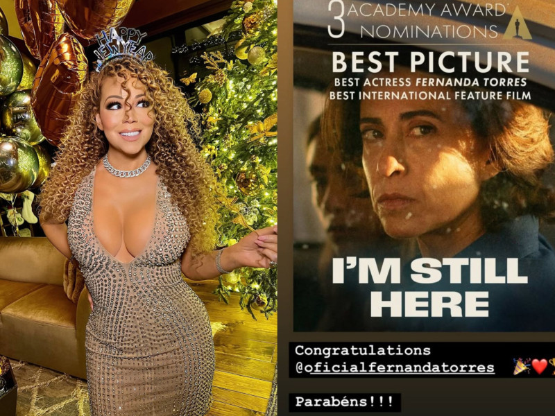 Nas redes sociais, a cantora Mariah Carey compartilhou uma publicação parabenizando Fernanda Torres pela indicação ao Oscar 2025