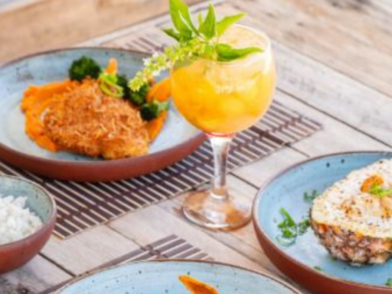 Comidas recomendadas envolvem camarão crocante; já o fim de tarde pode ser acompanhador por drinks, açai e hambúrguer