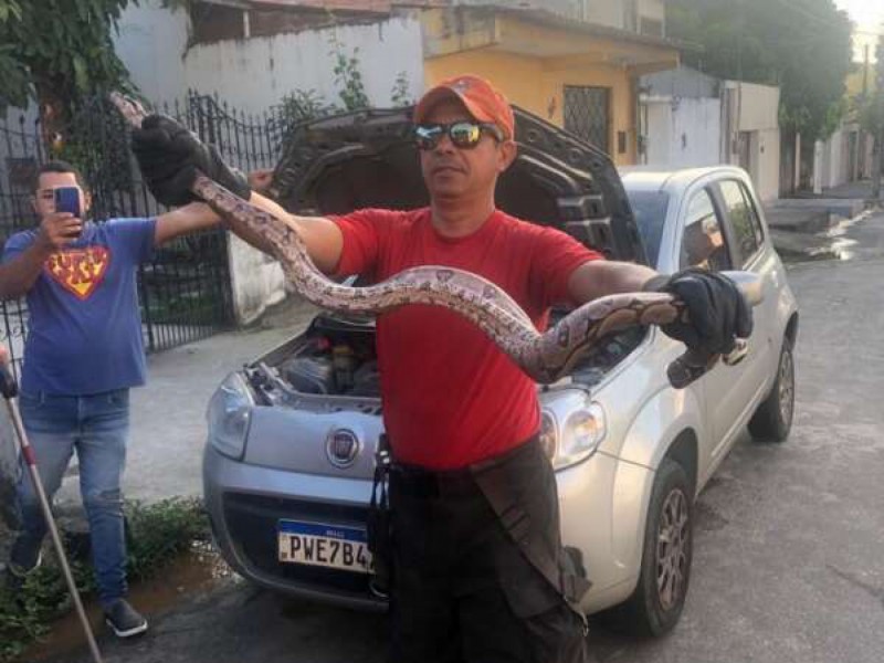 Uma jibóia foi resgatada pelo Corpo de Bombeiros Militar do Estado do Ceará (CBMCE) no bairro Parque Dois Irmãos. O animal estava dentro de um motor de veículo quando foi encontrado.