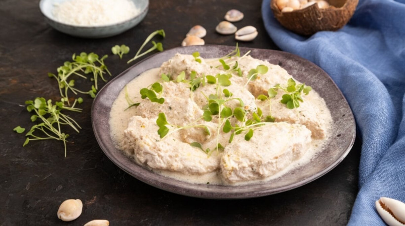 Filé de frango com molho de leite de coco