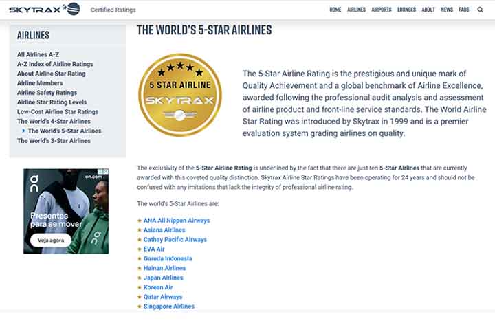 Ranking das melhores empresas aéreas do mundo