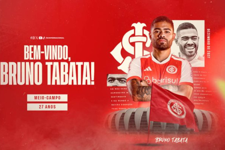 Neste domingo (11/8) o Internacional anunciou a contratação de Bruno Tabata. O apoiador estava no Palmeiras, mas fora dos planos de Abel Ferreira desde que voltou de empréstimo do Qatar-SC. Ele assina contrato de três anos com o Colorado. Os valores do negócio, contudo, não foram revelados.