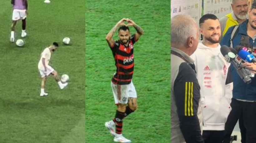 Os rubro-negros estavam ansiosos para ver o atacante pisar novamente no gramado do Maracanã. O sentimento, aliás, era o mesmo por parte do jogador. Logo que entrou para o trabalho de aquecimento, o atacante fez um show com a bola no pé, com direito a embaixadinha e bola atrás do pescoço.