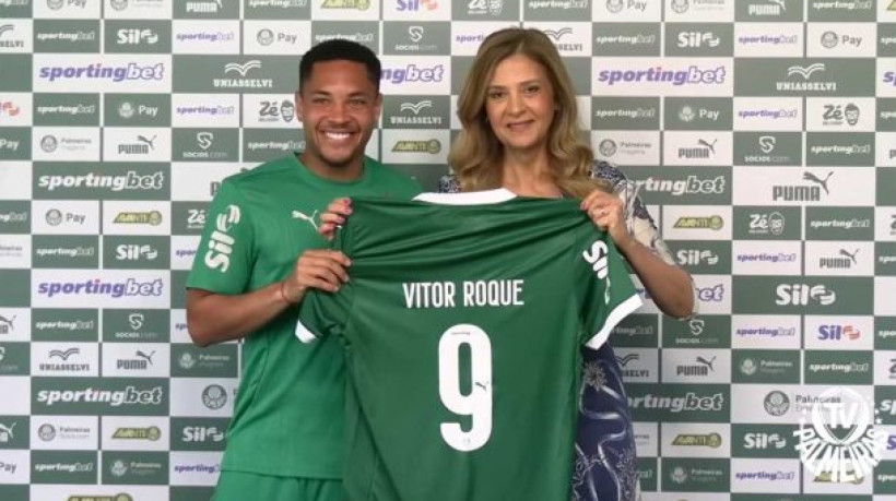 “Falam que não invisto, mas invisto em atletas excelentes, como esse aqui. Vitor, é um prazer imenso estar com você aqui. Não tenho dúvidas que vai ajudar o Palmeiras a conquistar muitos títulos. Agradecer a família dele e dizer que você aqui no Palmeiras conte com cada um de nós, vamos ajudar a você a desenvolver esse talento espetacular. Meus torcedores, eu trouxe o nove”, completou.
