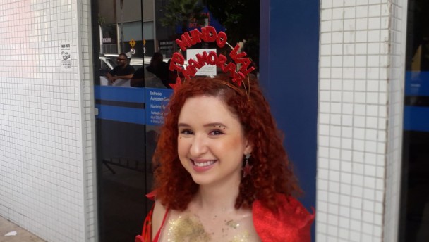 Para a gerente Elaine Dimas, 41, no Carnaval "tem que vir de forma política". Por isso ela escolheu uma placa com frase contra o racismo. "Vejo que todo mundo para pra ler", diz. Ela acredita que é importante trazer temas políticos para a festa.