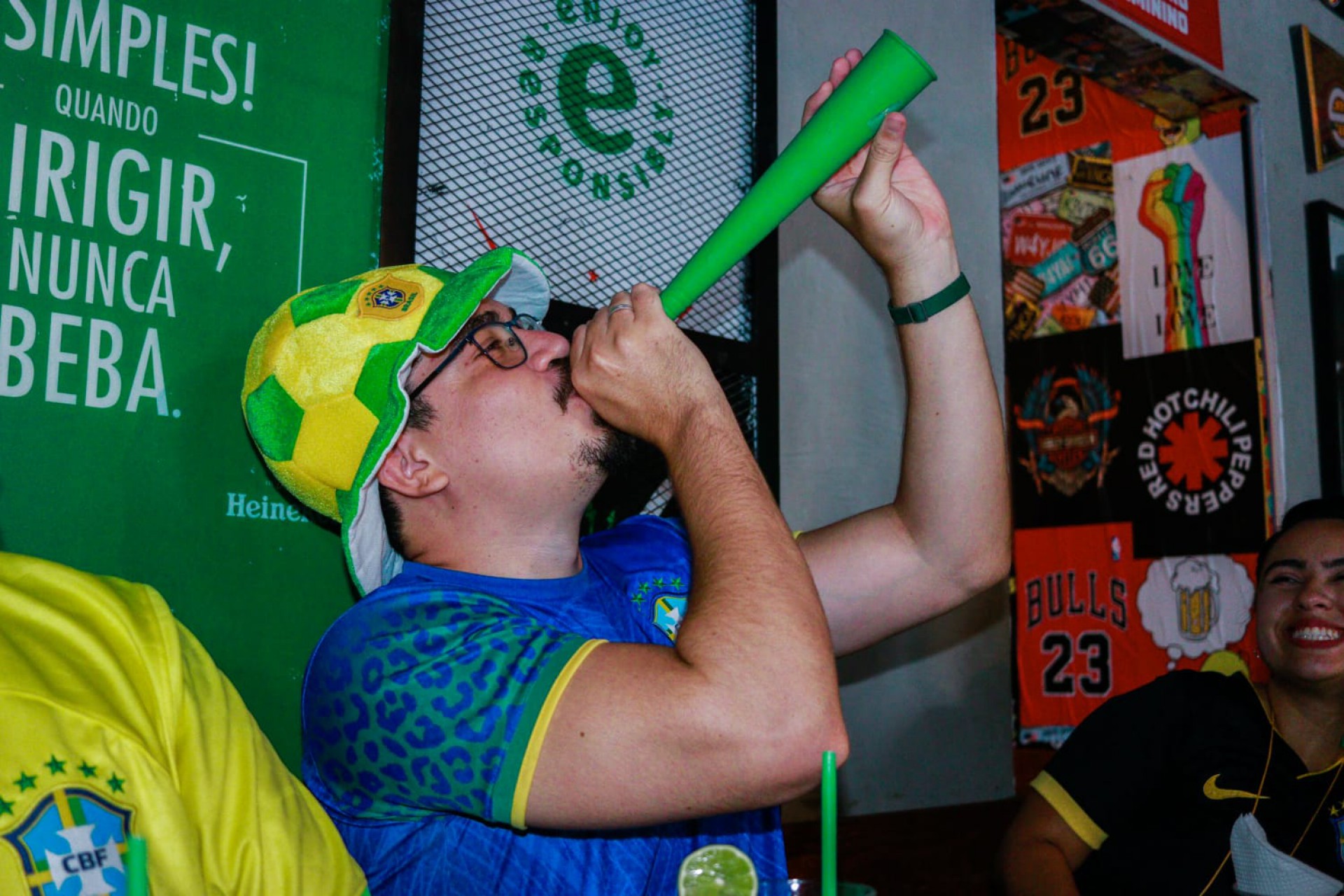 Torcedores cearenses se reuniram em Fortaleza para acompanhar a partida decisiva do Brasil contra a Croácia pelas quartas de final da Copa do Mundo do Catar