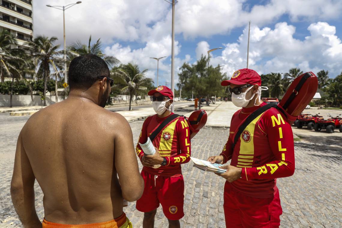 Apesar das recomendações de autoridades mundiais e estaduais, diversas pessoas continuam saindo de casa para passar o feriado do Dia de São José nas praias. Para reduzir o número de pessoas expostas ao novo coronavírus e conscientizá-las, o Corpo de Bombeiros Militar do Ceará realiza uma ação na Praia do Futuro, em Fortaleza, e também nas praias de Aracati, Icaraí, Cumbuco e Jericoacoara.