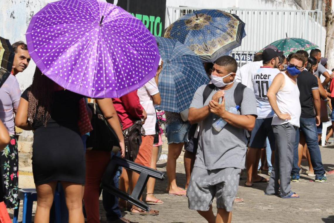 Apesar do descumprimento do distanciamento social, as pessoas circulam utilizando máscaras, conforme orientado pelas autoridades de saúde pública. Confira os registros de aglomeração feitos pelo O POVO na nossa galeria.