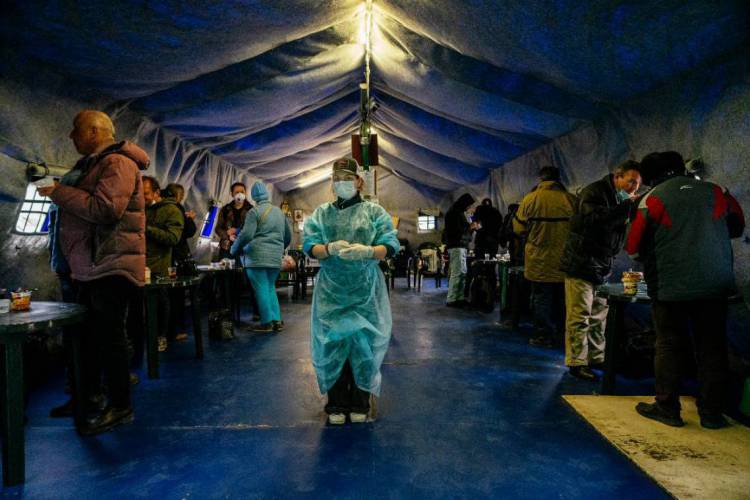 Homens e mulheres famintos entram em uma tenda mal iluminada, o "hangar", um dos poucos lugares em Moscou que atende os sem-teto. "Apenas duas pessoas por mesa, por favor", diz Valentina, voluntária que usa roupa de proteção, luvas e máscara. Afiliado à poderosa Igreja Ortodoxa russa, este estabelecimento financiado principalmente por doações pode servir refeições a 100 pessoas por dia. O número de desabrigados na Rússia aumenta devido ao confinamento e suas consequências econômicas.