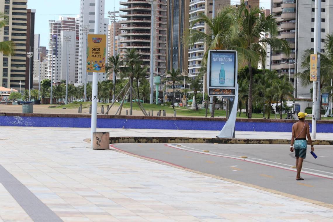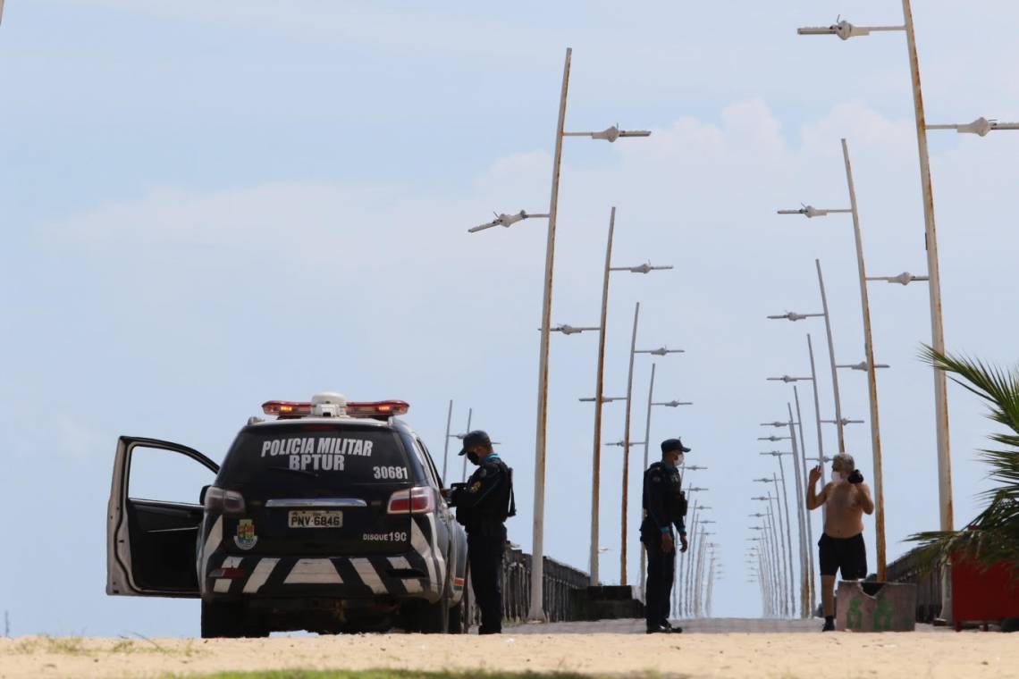 Nessas áreas, equipes do Corpo de Bombeiros Militar do Ceará (CBMCE) e da Guarda Municipal de Fortaleza (GMF) faziam fiscalização, advertindo os pedestres que não cumpriam o decreto.