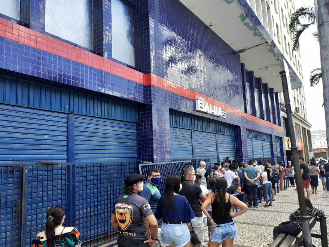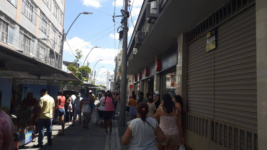 A retomada desta segunda-feira impacta, principalmente, o comércio do Centro de Fortaleza - local que costuma ter grande fluxo econômico do Estado. Com a reabertura gradual de algumas lojas, filas foram registradas nos arredores dos estabelecimentos. Os clientes esperam fora da loja para entrarem nos locais e não há distanciamento social entre a maioria.