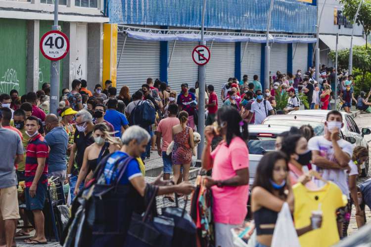 Calçadas apinhadas de gente e um vai e vém de consumidores que caminhavam lado a lado. O cenário de aglomeração, registrado neste sábado,13, no Centro da Cidade, tem se repetido nas praias, shoppings e outros centros comerciais espalhados pela Capital. Somente nos últimos cinco dias em Fortaleza, 151 estabelecimentos foram fechados por descumprir diretrizes do decreto estadual de isolamento social.