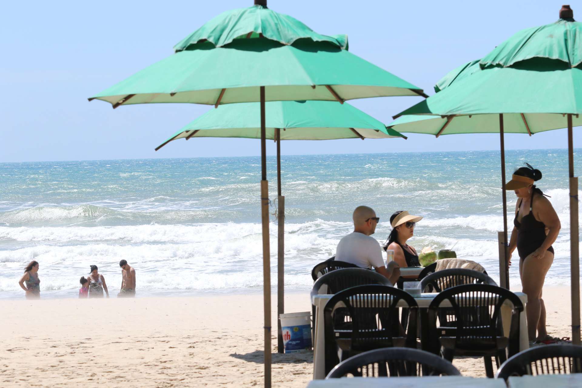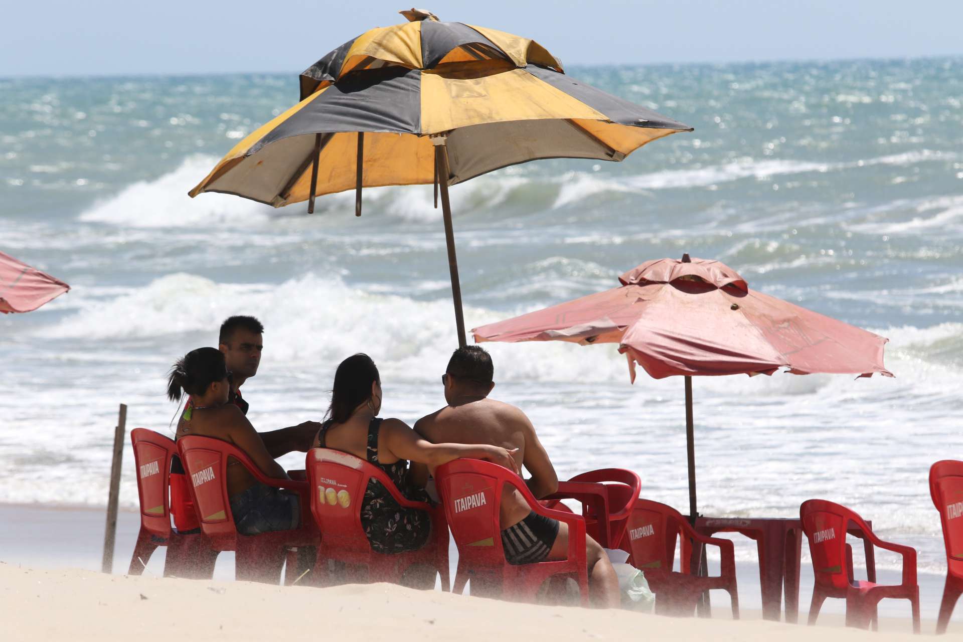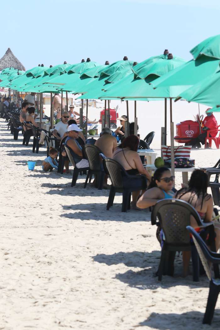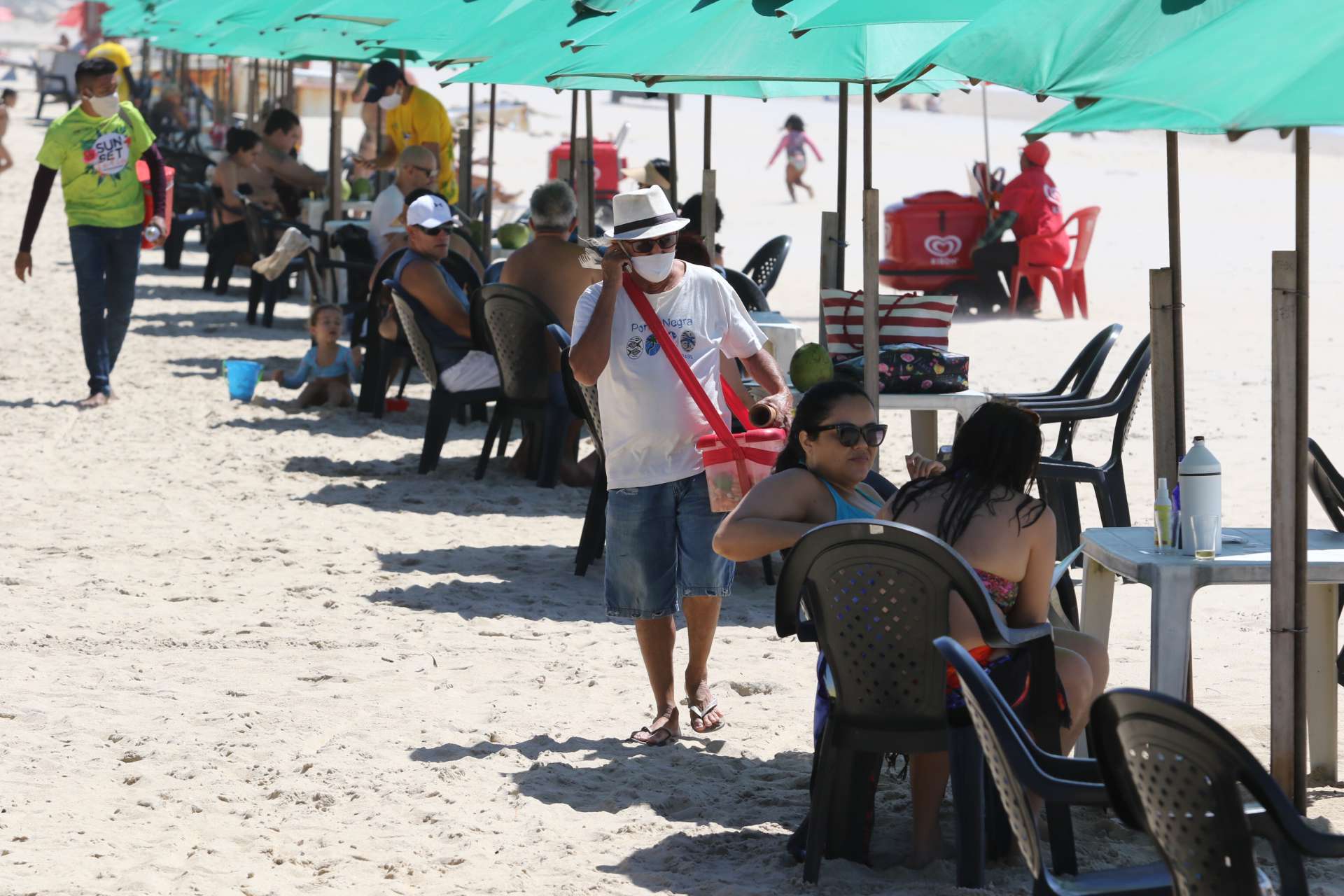 Homens, mulheres e crianças aproveitaram o dia ensolarado em Fortaleza para irem à praia, que já mostrava aglomerações mesmo antes de as barracas reabrirem. Nesses estabelecimentos, a grande maioria dos clientes não utilizavam máscaras e aguardavam por atendimento formando pequenos grupos, descumprindo a orientação de distanciamento dada por órgãos sanitários.