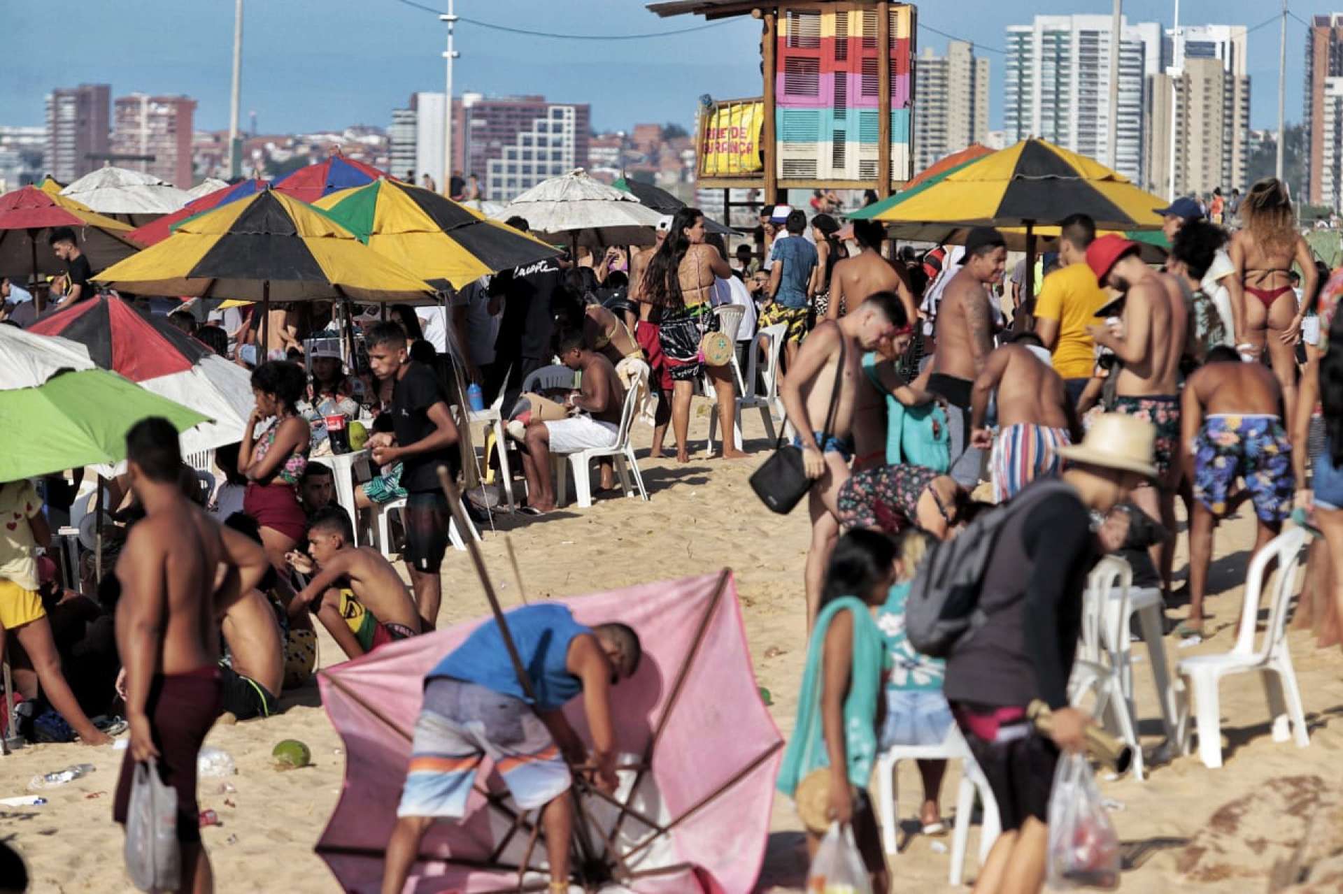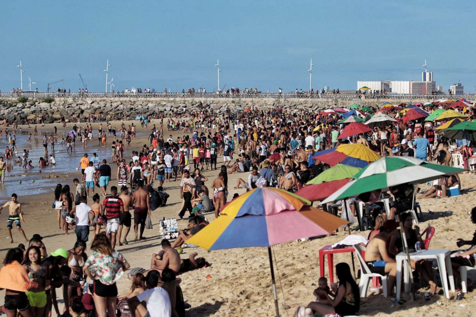 Homens, mulheres e crianças sem máscaras, circulando muito próximas uma das outras e sem obedecerem protocolos sanitários necessários para a proteção contra a pandemia. Essa foi a imagem observada na Praia dos Crush nesta tarde, no dia em que o Ceará registra 162.086 casos do novo coronavírus e 7.494 mortes pela doença.