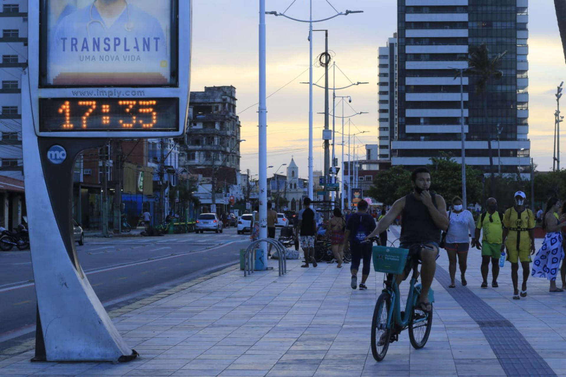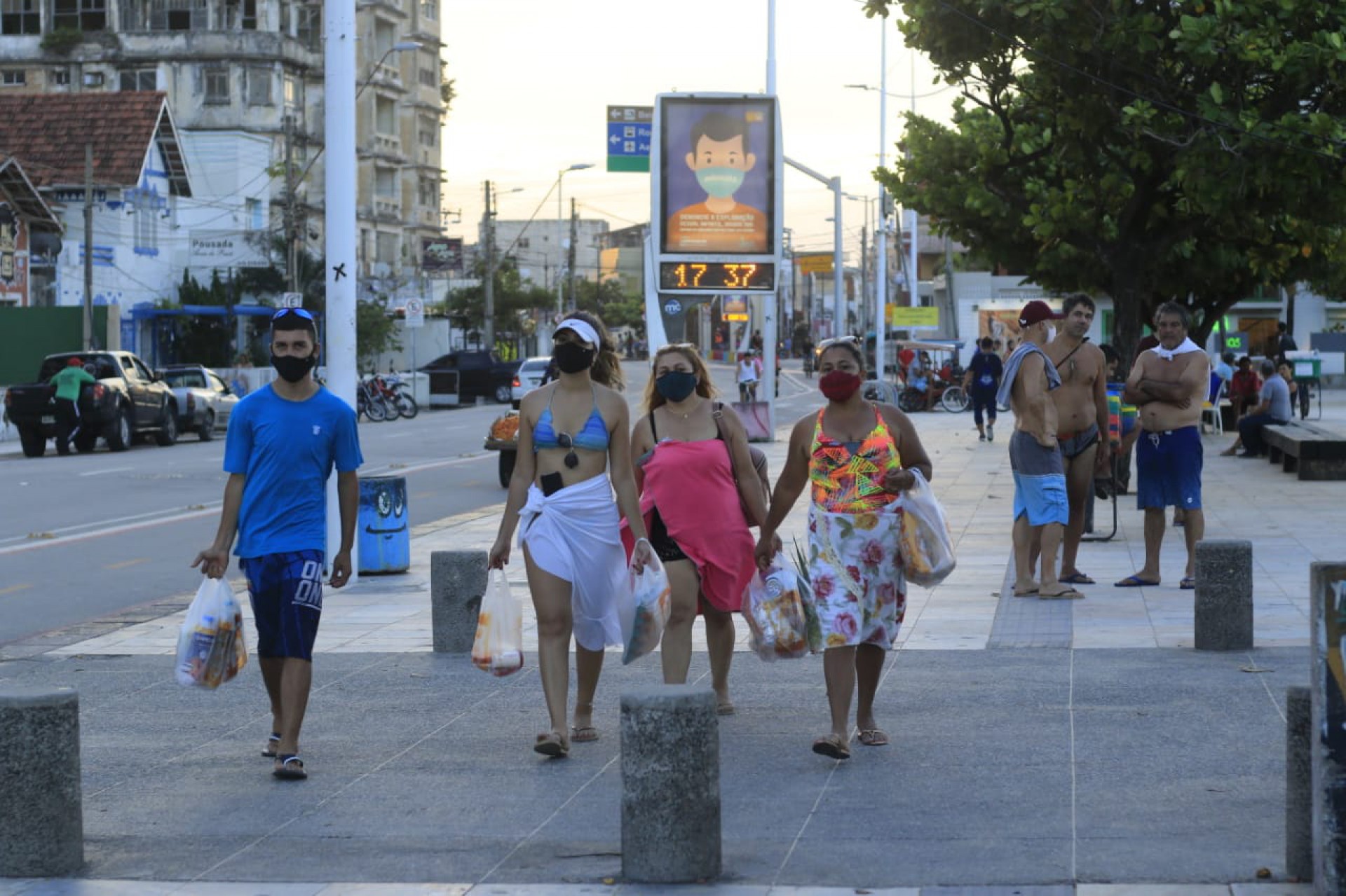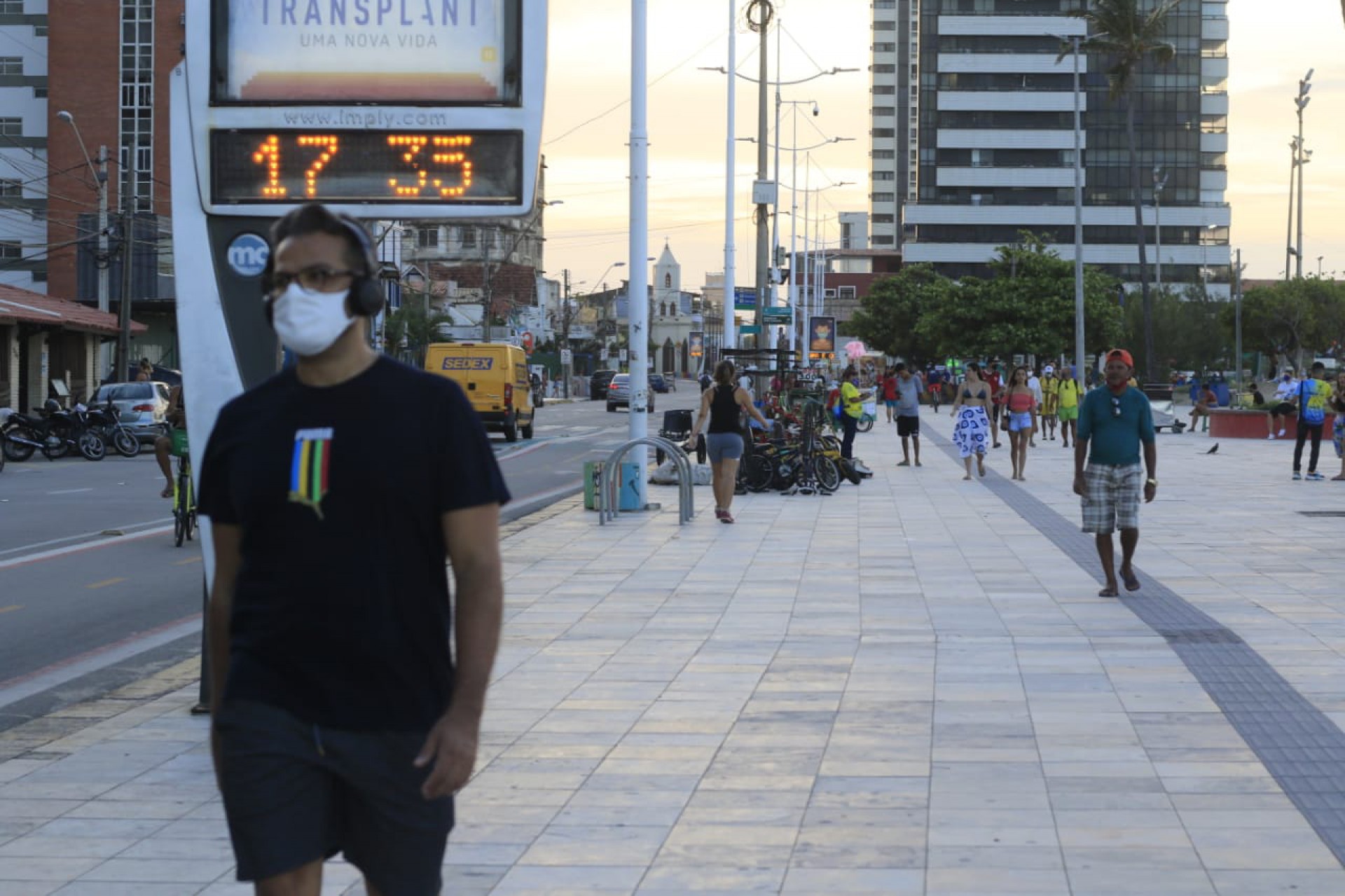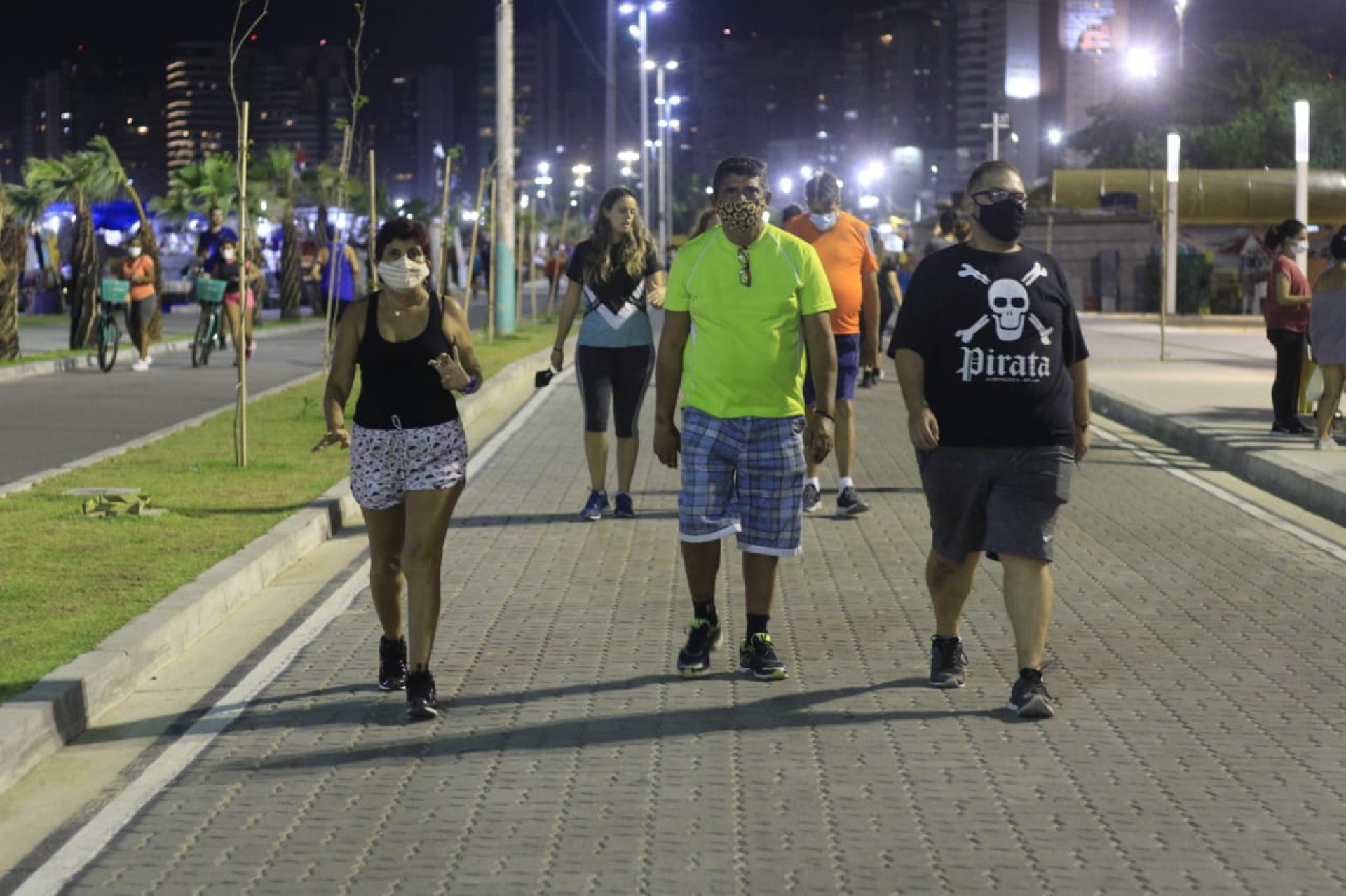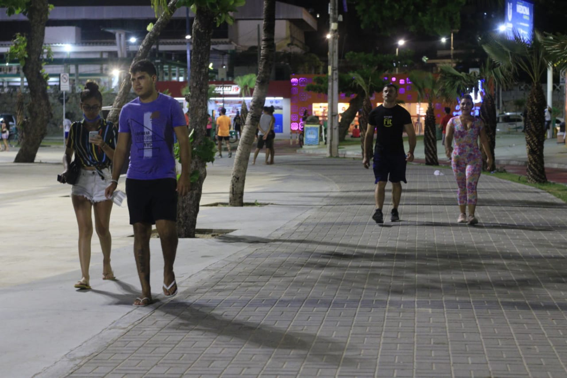 No dia em que o novo decreto estadual passa a valer, nesta quinta-feira, 18, a Avenida Beira Mar, em Fortaleza, registrou uma movimentação típica de uma semana normal. Circulação de pessoas em espaços públicos como esse estão proibidas das 17 h às 5 horas do dia seguinte, mas populares frequentavam o lugar mesmo após o período determinado.