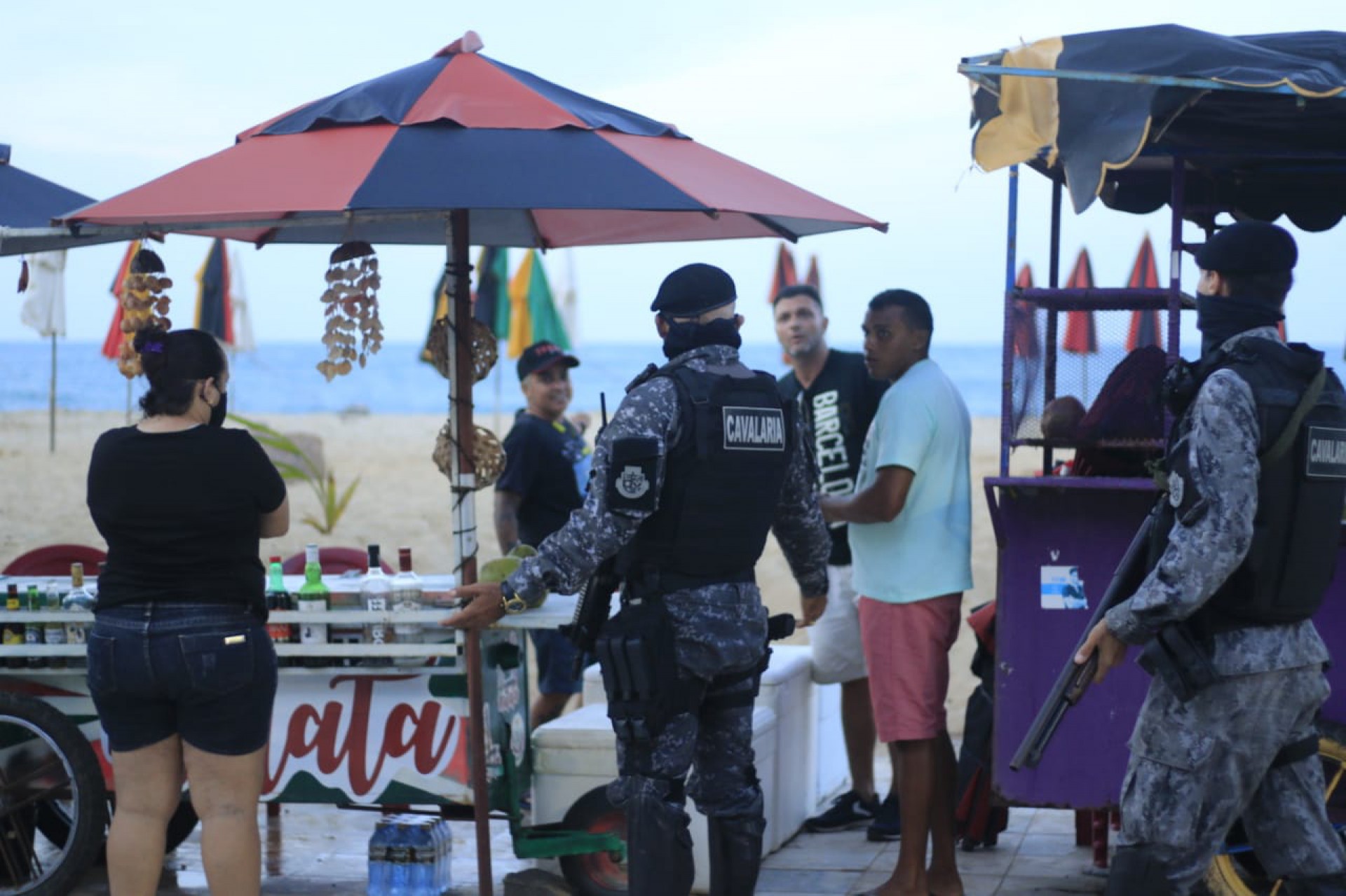 Diante desse cenário, equipes da Polícia Militar (PM) e da cavalaria estiverem no local dispersando tanto populares quanto comerciantes que atuavam na região após o horário permitido, principalmente nas proximidades da Praia dos Crush. Na ocasião, ambulantes reclamaram da falta de aviso do Estado e da situação econômica provocada pelo limite de horário imposto.