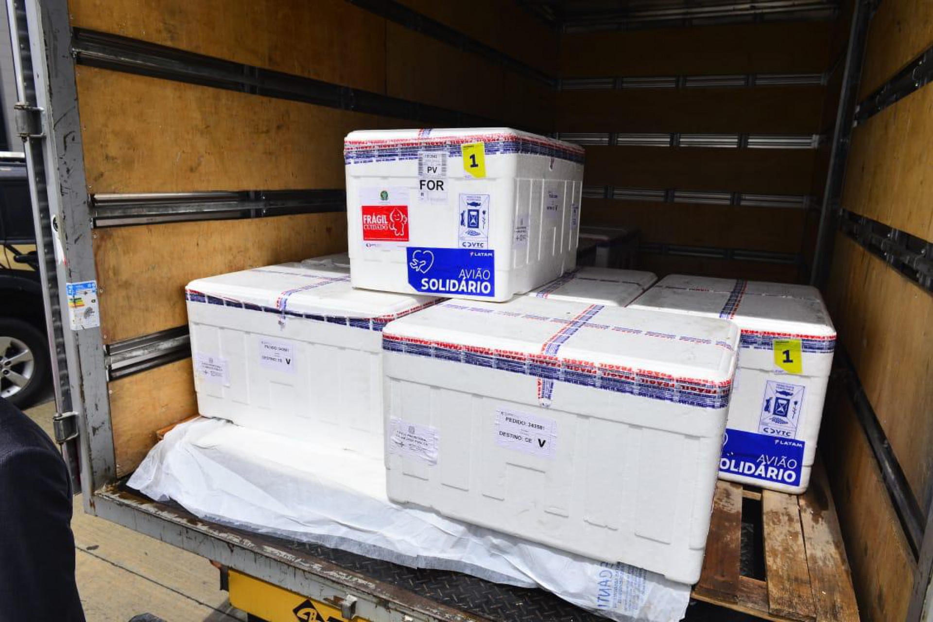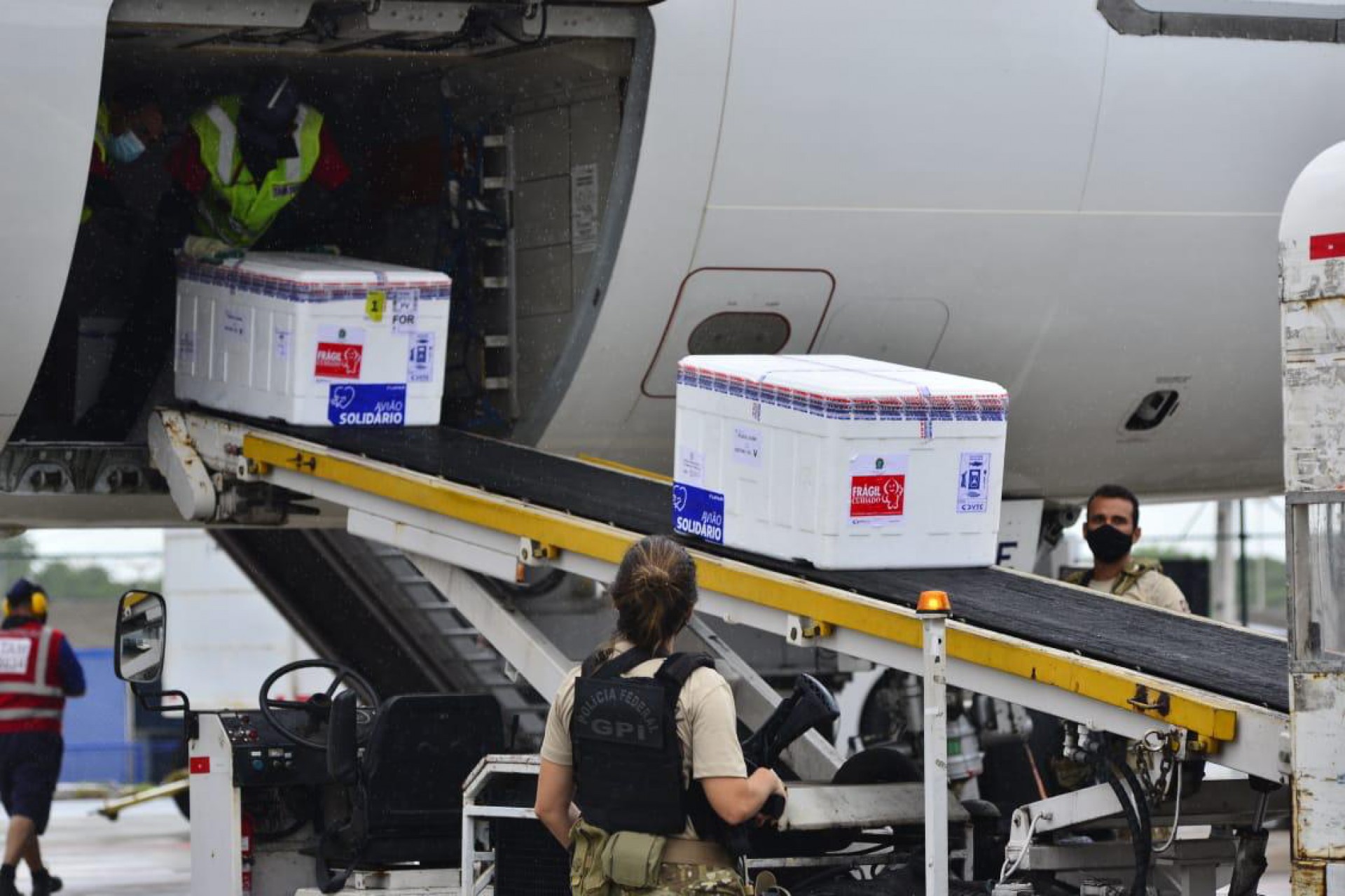 Ceará recebeu o sétimo lote de vacinas contra a Covid-19 nesta quarta-feira, 3. São 115.600 doses da vacina Coronavac, produzidas pelo Instituto Butantan em parceira com a farmacêutica chinesa Sinovac. As doses serão distribuídas na Capital e no Interior do Estado. O Estado utilizará 50% na primeira dose (D1) e os outros 50% serão guardados para a segunda dose (D2).