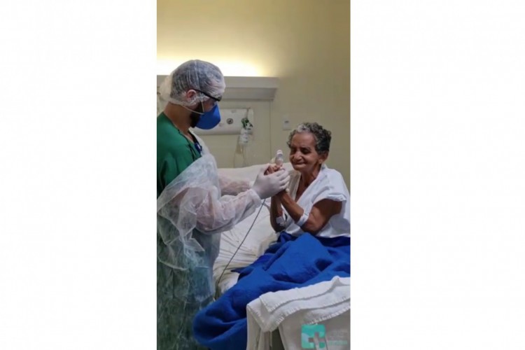 O fisioterapeuta também se emociona e retribui o carinho. "A senhora é uma guerreira e nossa maior felicidade é ver a senhora com saúde", afirma. Em seguida, os dois rezam juntos uma Ave Maria. O episódio ocorreu na manhã de ontem. Pela tarde, às 14 horas, Cicera recebeu alta e ainda comemorou a vitória contra a Covid-19 com muito forró.