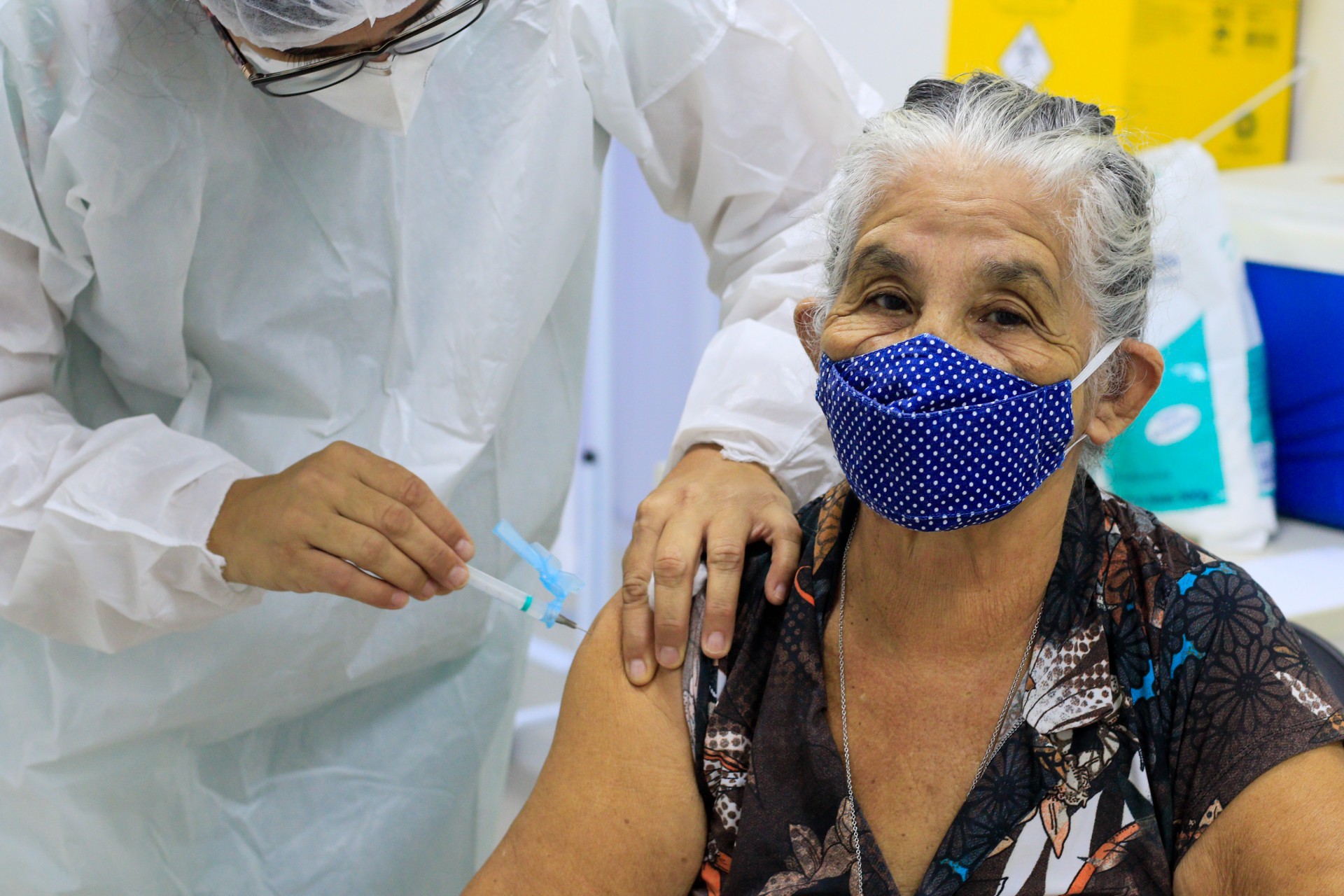 Meta é vacinar 40 mil idosos no fim de semana. Mais de 50 pontos de vacinação estão funcionando neste fim de semana a fim de acelerar a imunização de idosos em Fortaleza