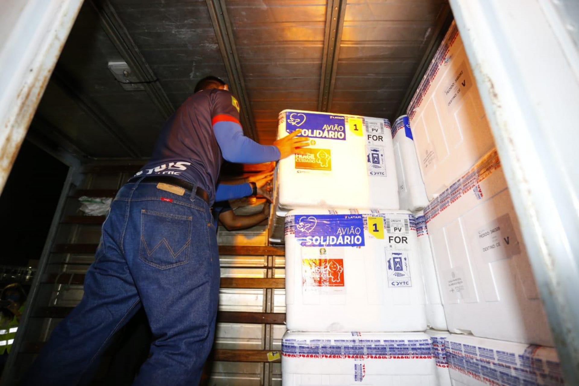 A chegada dos imunizantes contra a Covid-19 tem acontecido semanalmente e totaliza 2.110.250 doses. Confira os lotes por dia, quantidade de doses e tipo da vacina: