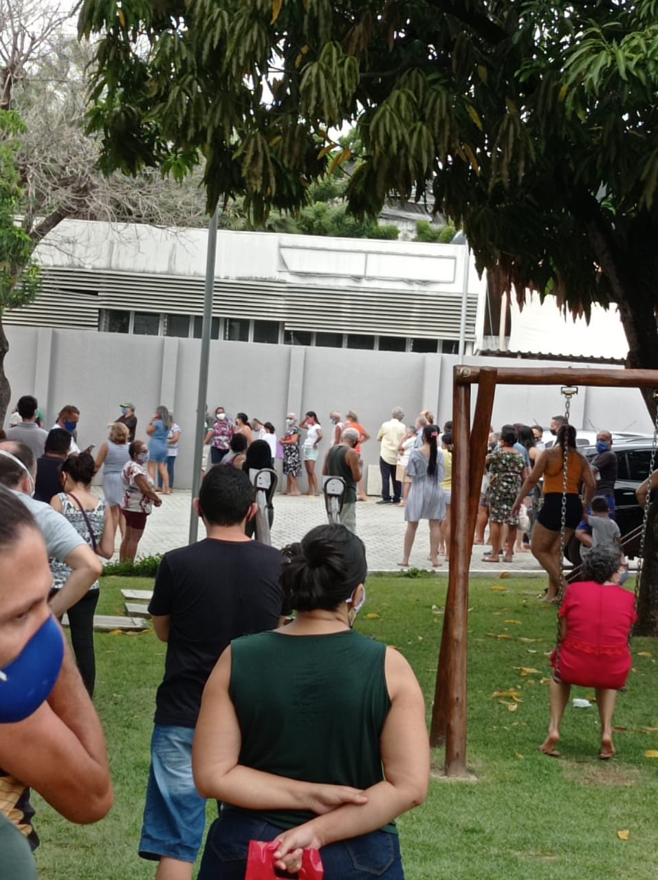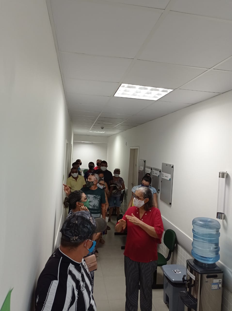 Após aguardar entre 40 e 50 minutos, Maria do Socorro (que tem artrose e sentiu dificuldade de ficar em pé por tanto tempo) conseguiu receber a última dose da vacina para concluir o esquema de imunização. Mas, nesse meio tempo, muitos idosos na frente e atrás de Rafael desistiram de aguardar. Dentro da policlínica, reforça o professor, o ambiente era fechado e funcionava com ar-condicionado, piorando o cenário de aglomeração.