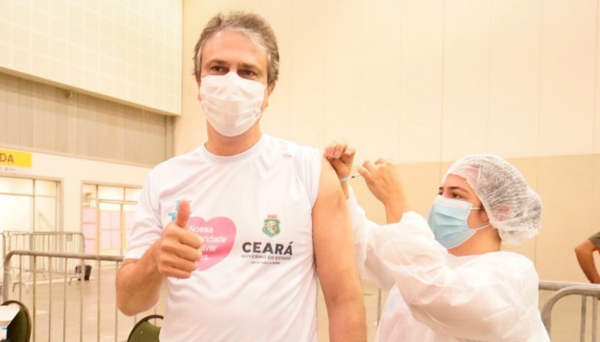 O governador do Ceará, Camilo Santana (PT), recebeu a primeira dose da vacina contra a Covid-19 neste sábado, 12. O registro foi compartilhado nas redes sociais e o gestor comemorou o momento. "Recebi hoje a primeira dose da vacina. Viva a Ciência! Viva o SUS! Juntos estamos vencendo a pandemia!", escreveu ele.