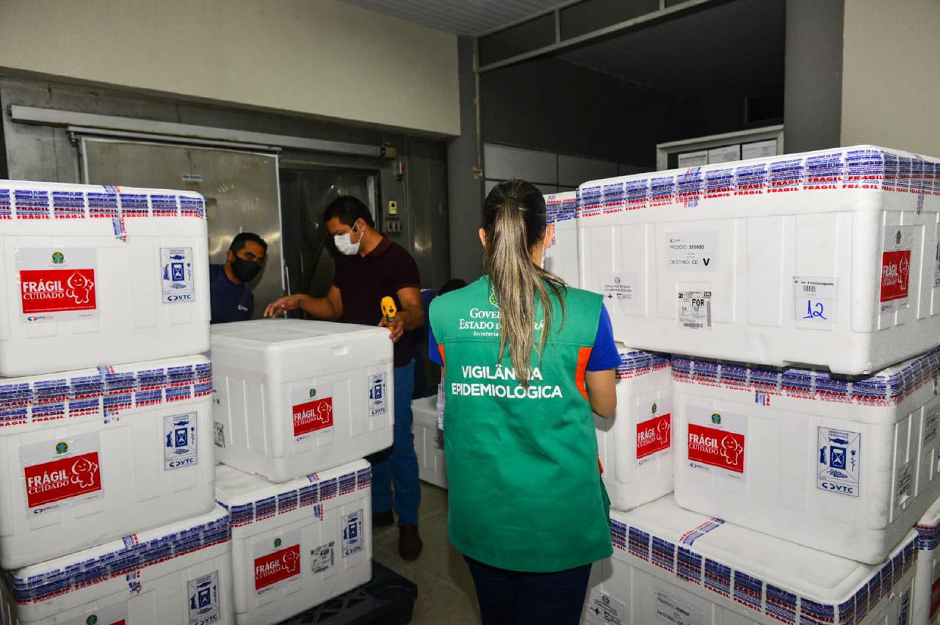 Camilo Santana afirmou que a entrega de outros imunizantes pelo Ministério da Saúde (MS) é aguardada ainda nesta semana. O lote de hoje é o 47º recebido pelo Estado desde o início da imunização