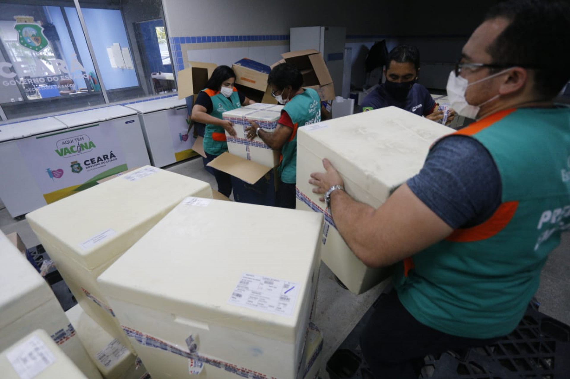 Os carregamentos foram levados à Central de Armazenamento e Distribuição de Imunobiológicos (Ceadim), da pasta de saúde estadual. De lá, as doses serão distribuídas aos munícipios cearenses, contribuindo para o avanço do processo de imunização.