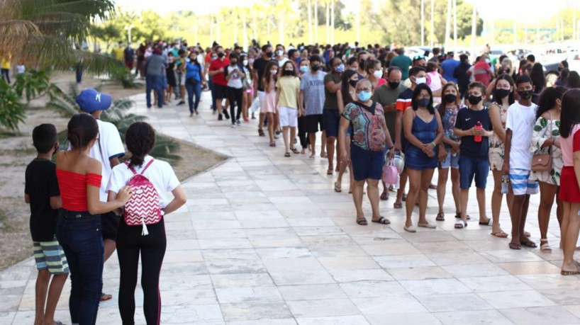 Feriado com fila e vacinação contra a Covid para adolescentes em Fortaleza