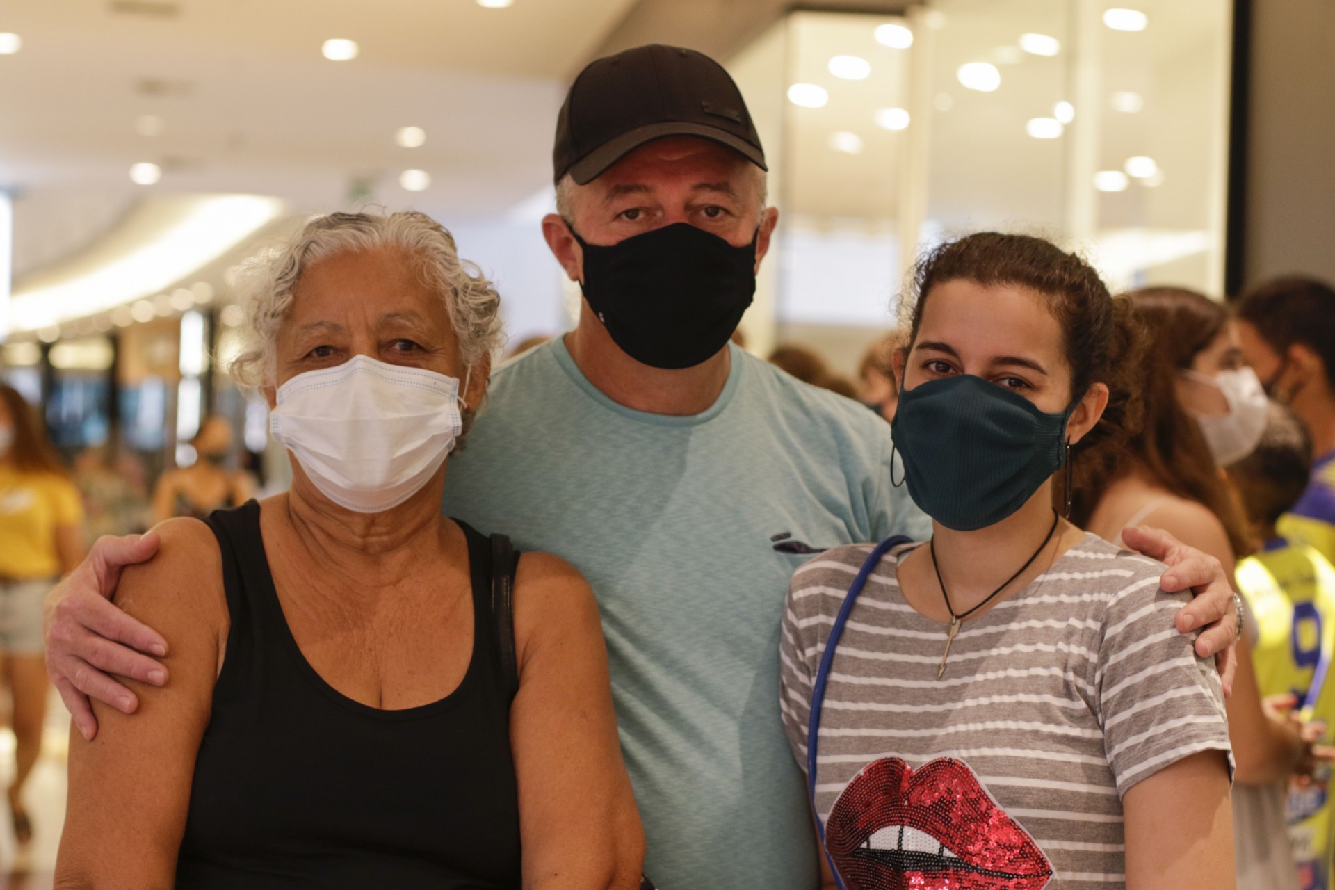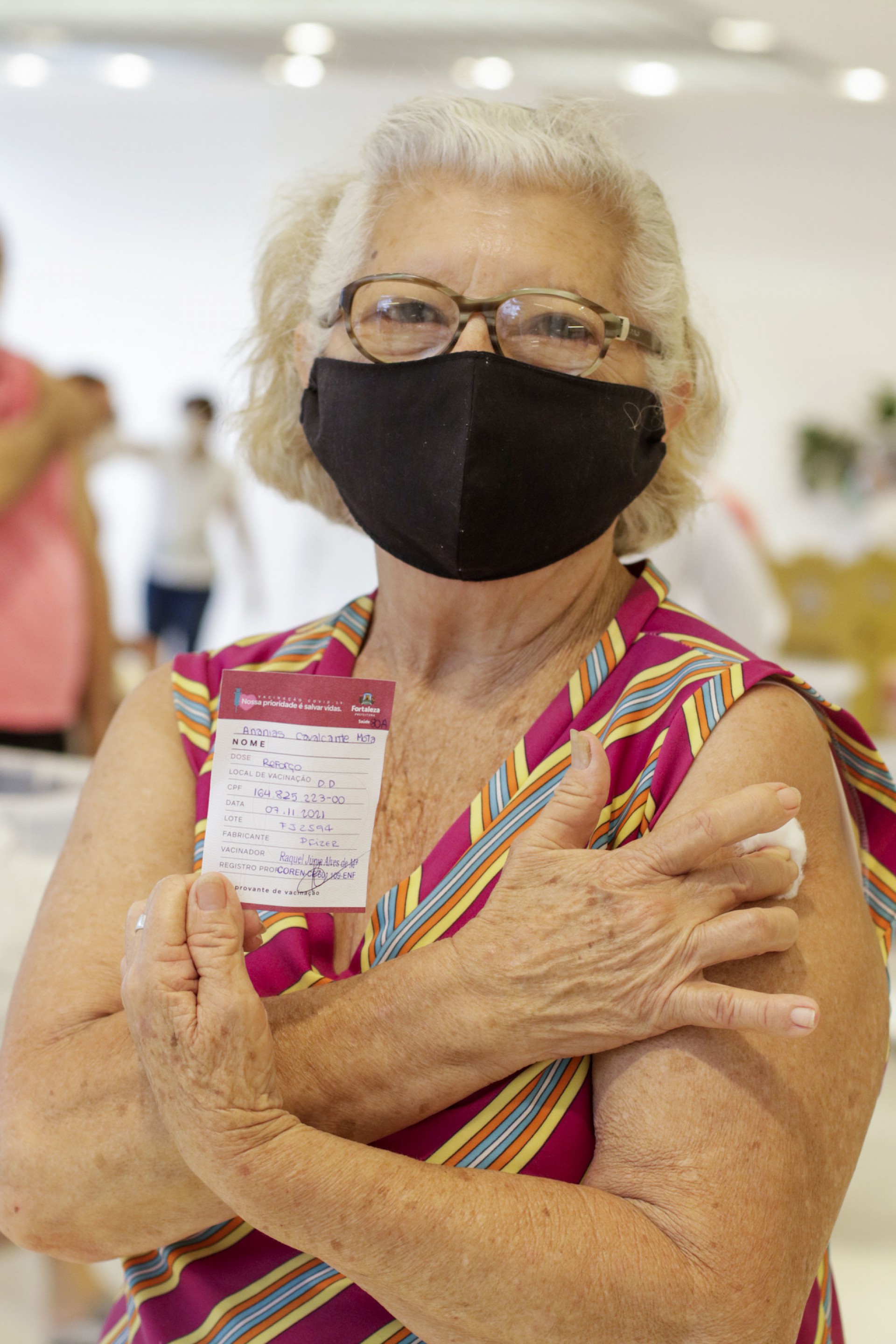 Roberta Feitosa tentou levar a mãe de 80 anos, Mariana Feitosa, para imunização no Centro de Eventos neste doming, 7. Como não conseguiu o atendimento, veio até o Iguatemi. "Foi muito rápido", comemorou. Dona Mariana teve Covid-19 após a primeira dose da vacina, o que atrasou seu ciclo vacinal devido ao intervalo de 30 dias. "Foi ótimo, bem tranquilo. Não doeu nada", brincou a idosa.