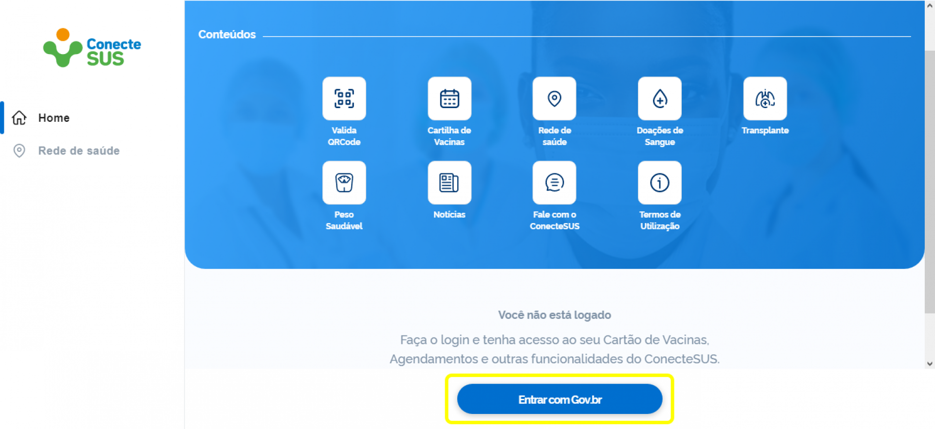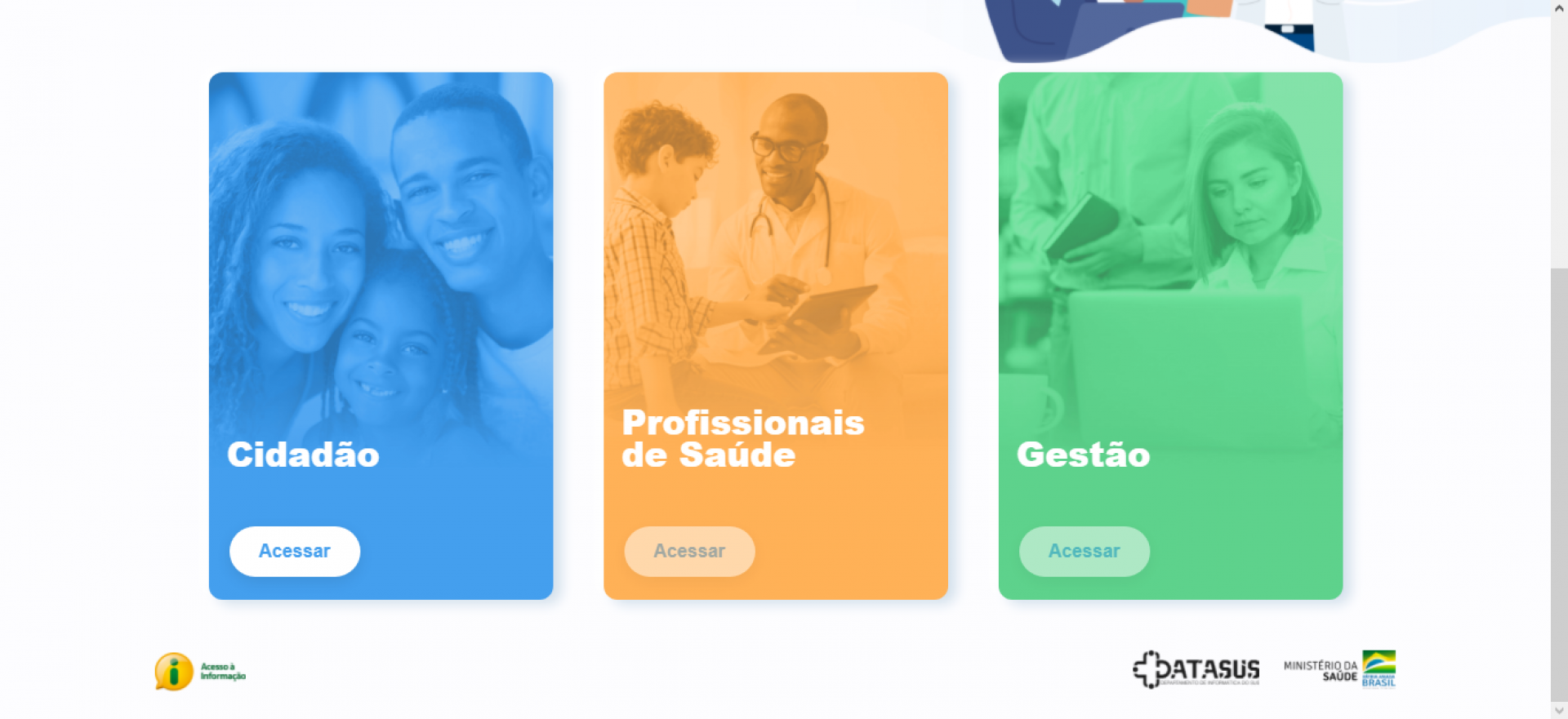 1 – Acesse o site do ConecteSUS e selecione a opção "Cidadão"; em seguida, você verá a página inicial de serviços;