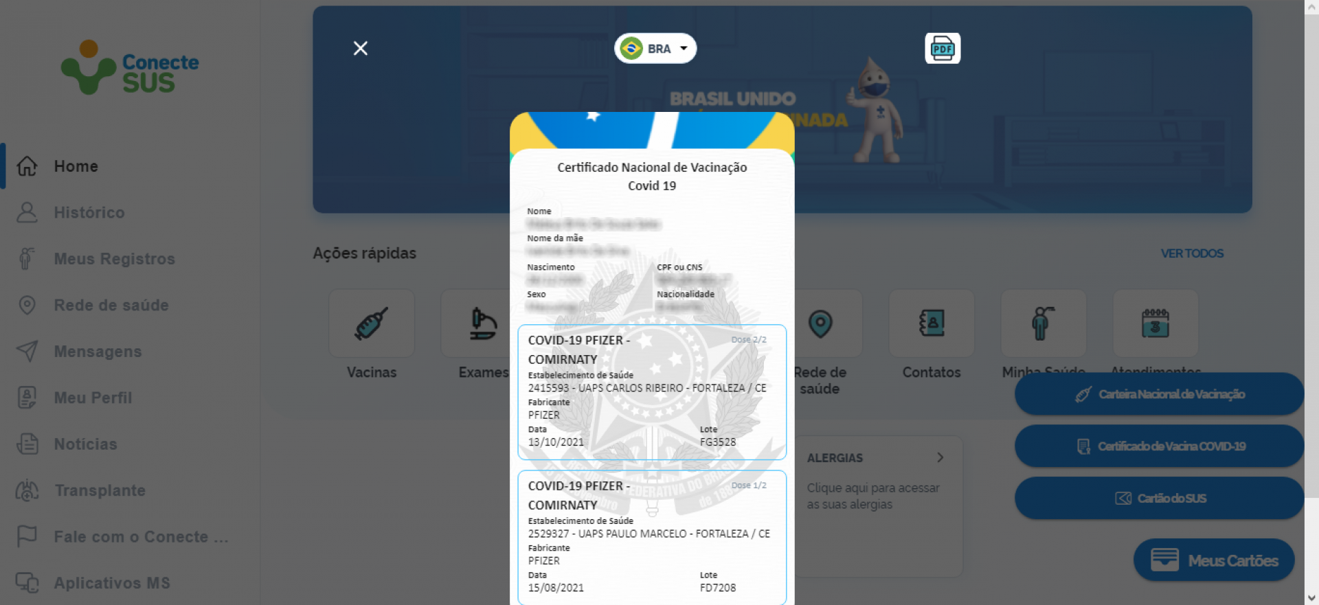 O “passaporte de vacinação” é emitido de forma gratuita no site ConecteSUS e no aplicativo Ceará App, do Governo do Estado, disponível para Android e iOS.