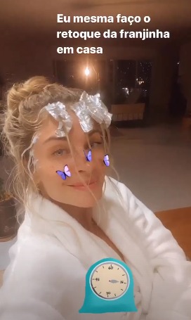 A atriz afirma que ainda consegue fazer luzes, e que também retoca a franja sozinha. Em postagens nas redes sociais, ela fez a técnica contour no cabelo, que consiste em deixar a franja mais clara que o restante do cabelo, para uma transformação leve, mas também marcante.