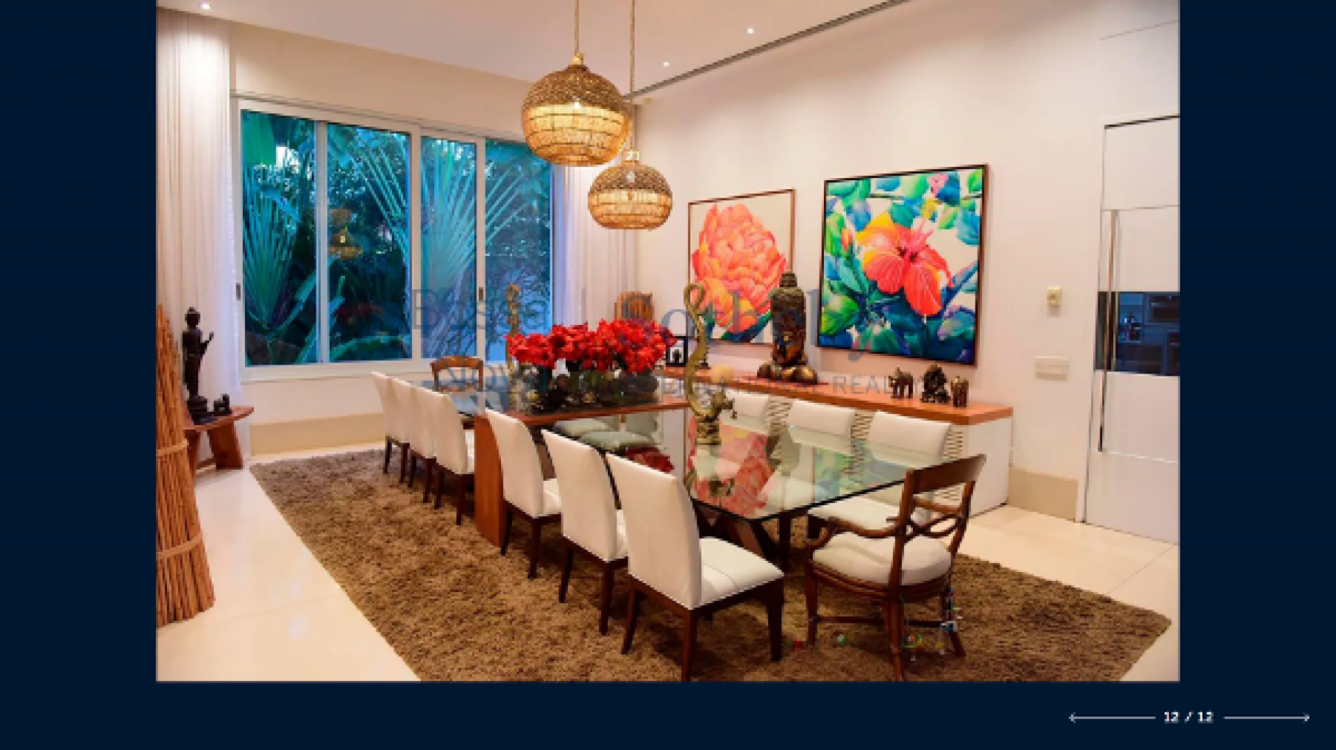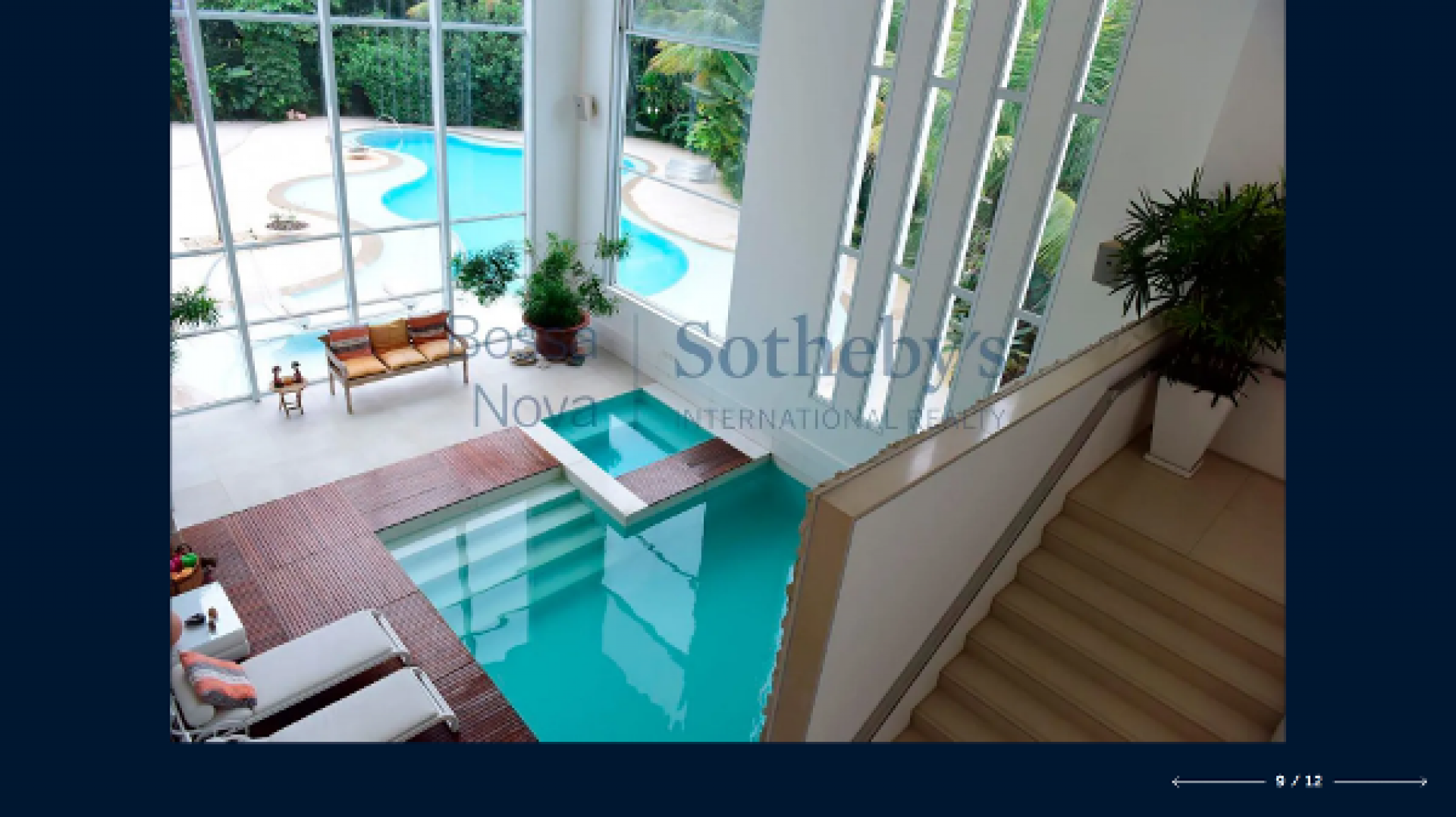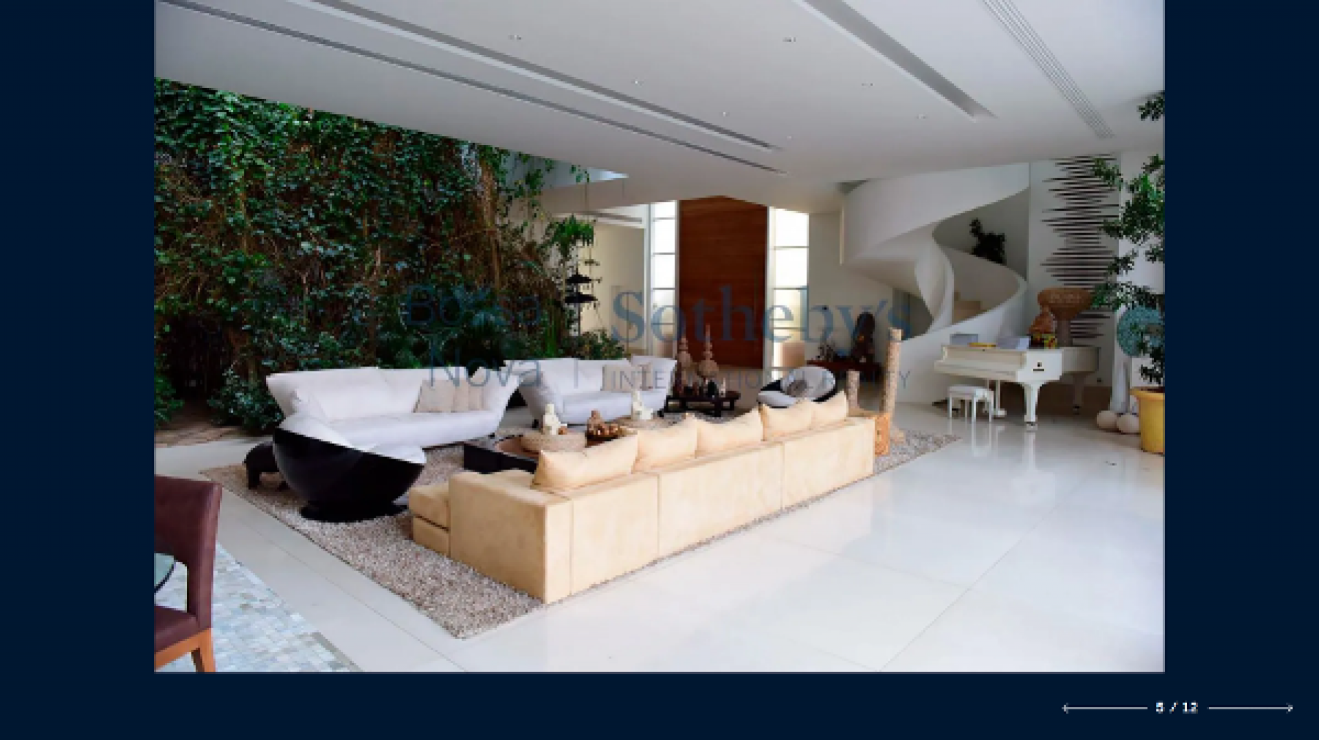Mansão conta com closet, escritório, banheiro, copa-cozinha ampla e duas despensas, além de sala de estar ampla, dividida em três ambientes, conforme consta na descrição no site imobiliário. Fotos podem ser vistas na plataforma. Área íntima tem cinco suítes, duas delas com 168 metros quadrados. A garagem tem espaço para seis carros, possui casa de máquinas e área de serviço.